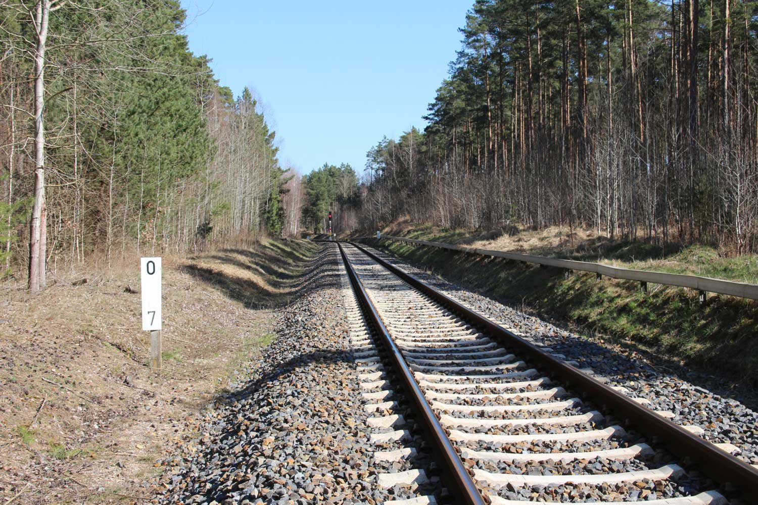km 0,1 in Grunow (Niederlausitz) - Blick Richtung Streckenanfang