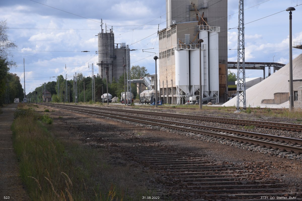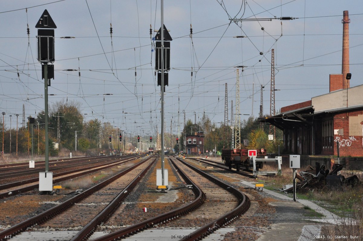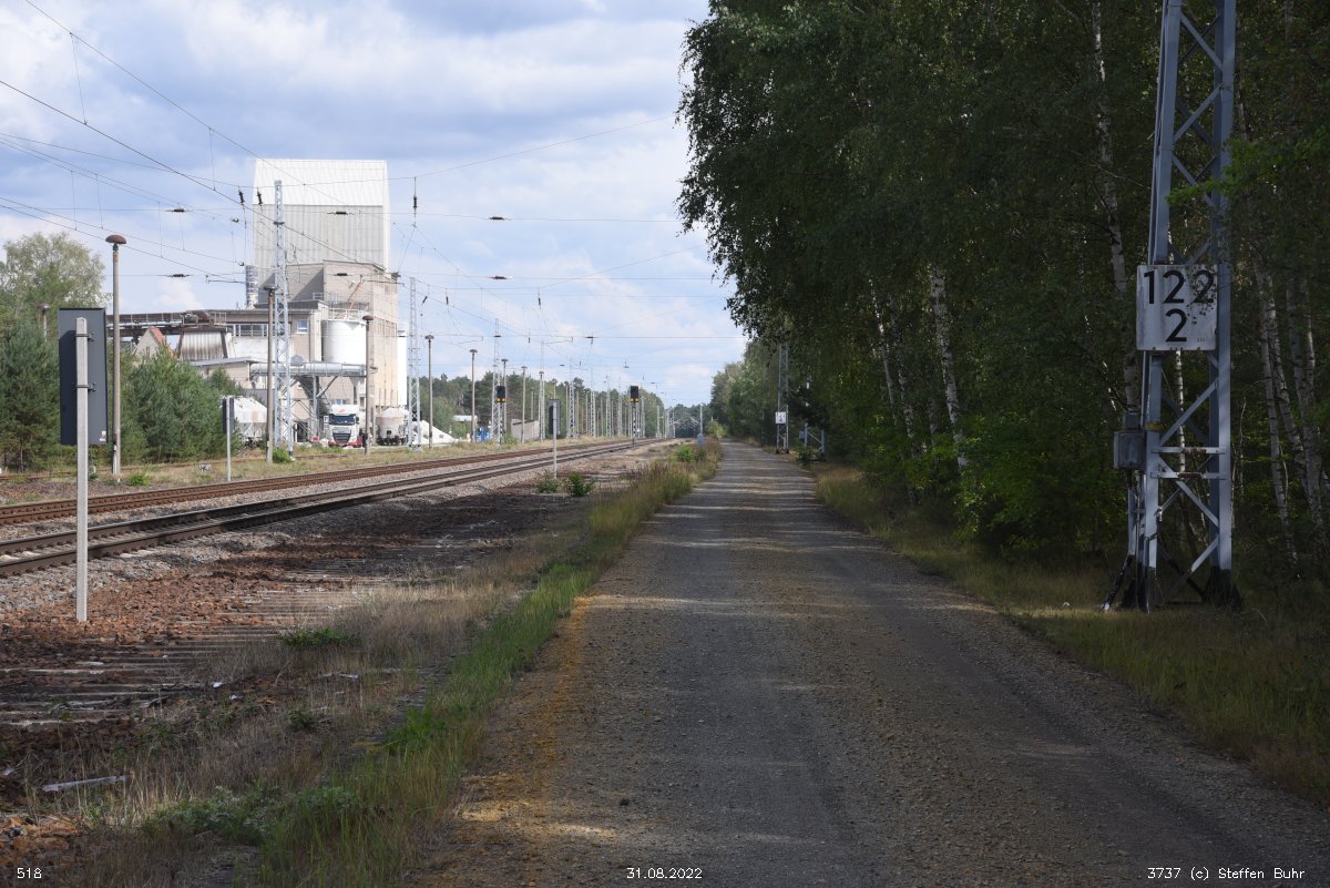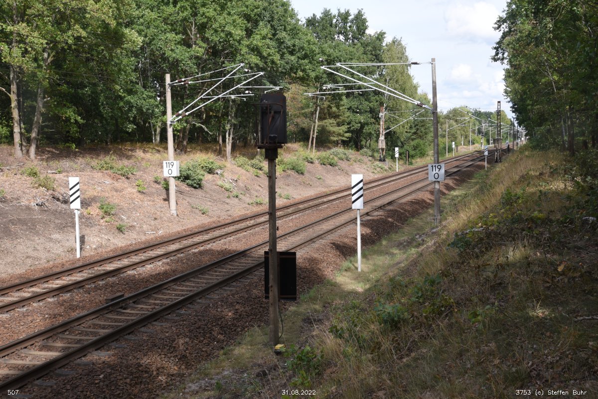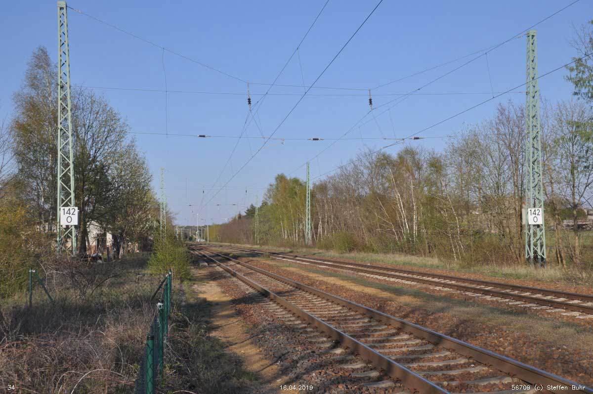 | km 161,65 der Strecke Berlin Anhalter Bf -0,07 - Jüterbog 62,82 - Bitterfeld 131,64 - Halle (Saale) Hbf 161,65 | ||