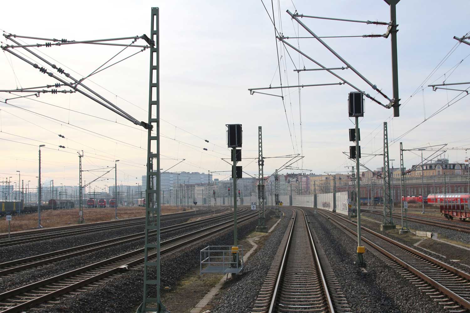 km 1,4; km 1,5 und km 1,6 zwischen Halle (Saale) Hbf und Abzw Peißen -Blick Richtung Guben