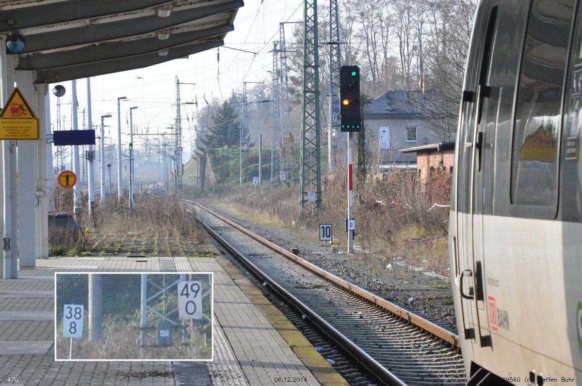 | Halle (Saale) Hbf | -0,31 | km 86,03 der Strecke Magdeburg Hbf 0,0 - Köthen 49,80 - Halle(Saale) Hbf 86,03 - Leipzig Hbf 123,68 |