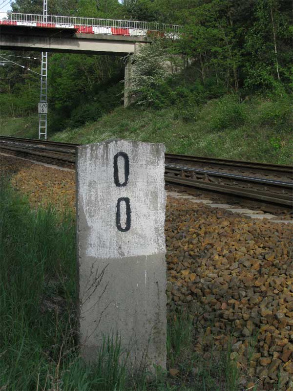 | km 0,01 der Strecke Halle (Saale) Hbf 0,01 - Sangerhausen 59,22 - Nordhausen 97,07 - Eichenberg 170,48 - Hann. Münden 193,54 | ||