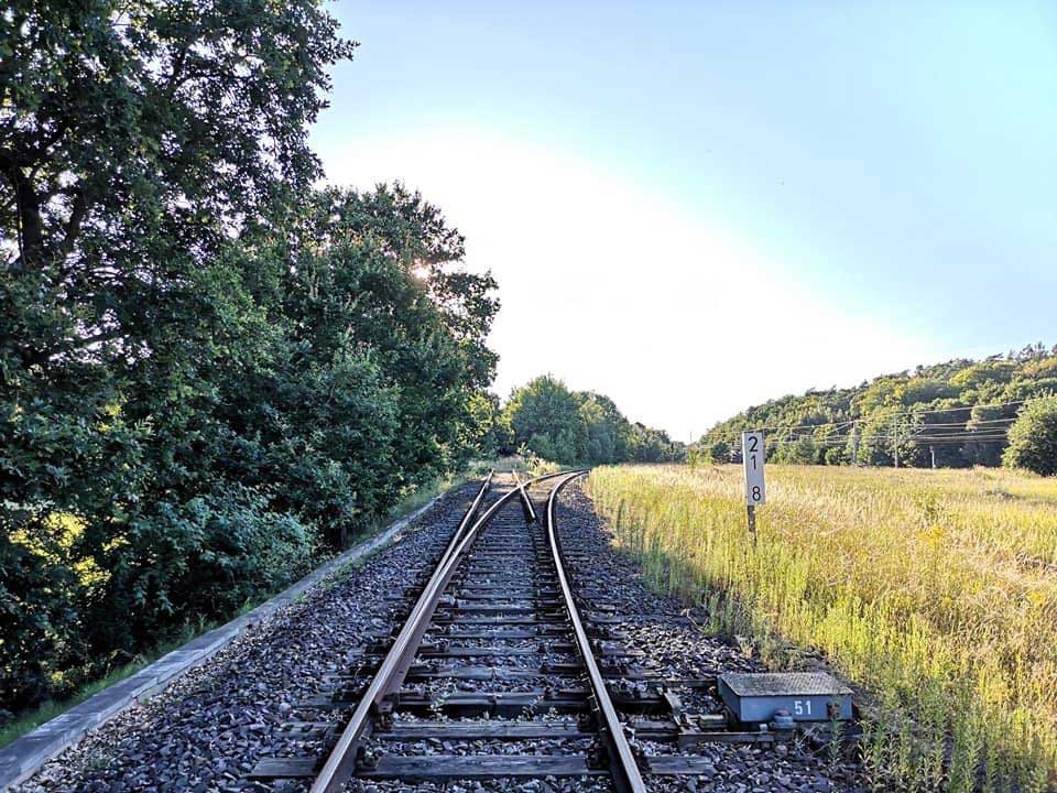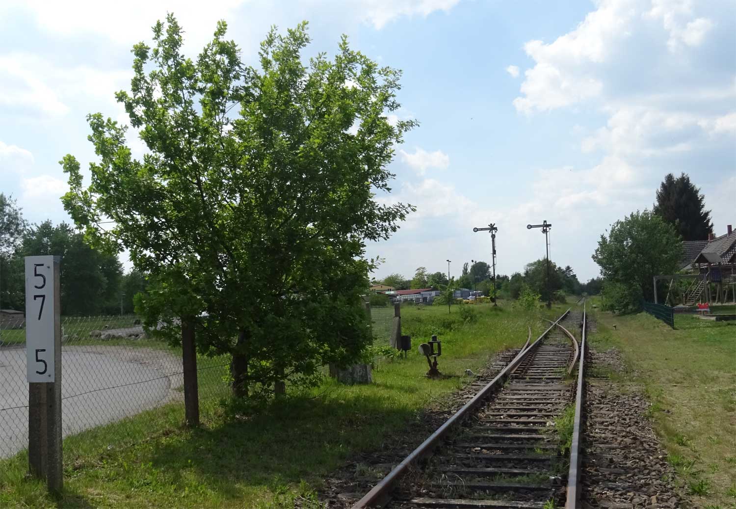 Das Gleis gehört zur Strecke Wismar - Rostock bei km 5,8