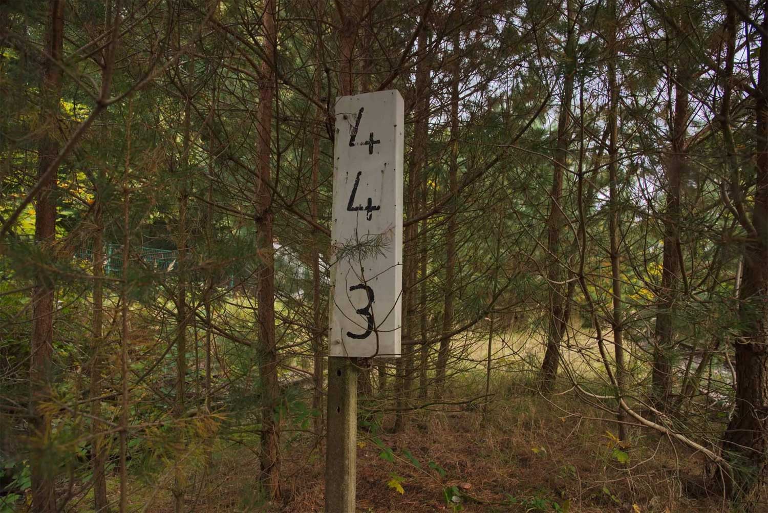 km 44,3 (Tafel links und Metalltafel rechts) in Borkow - 219 034