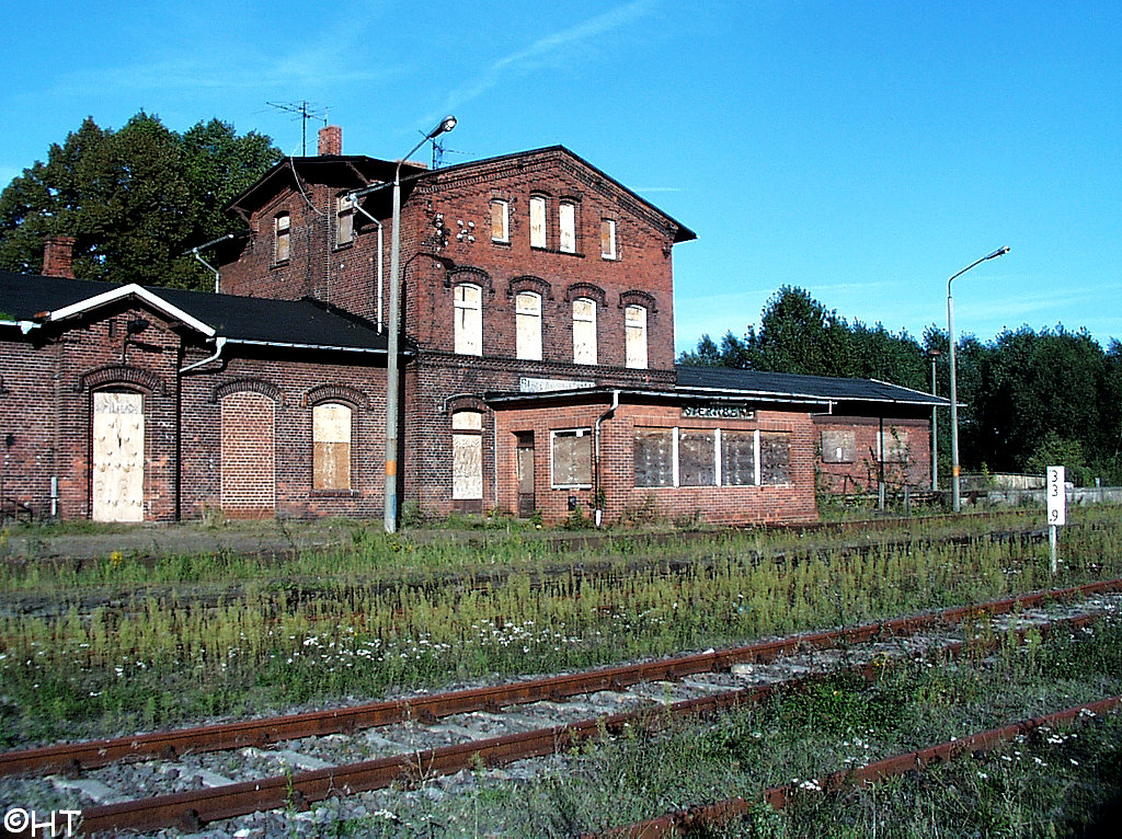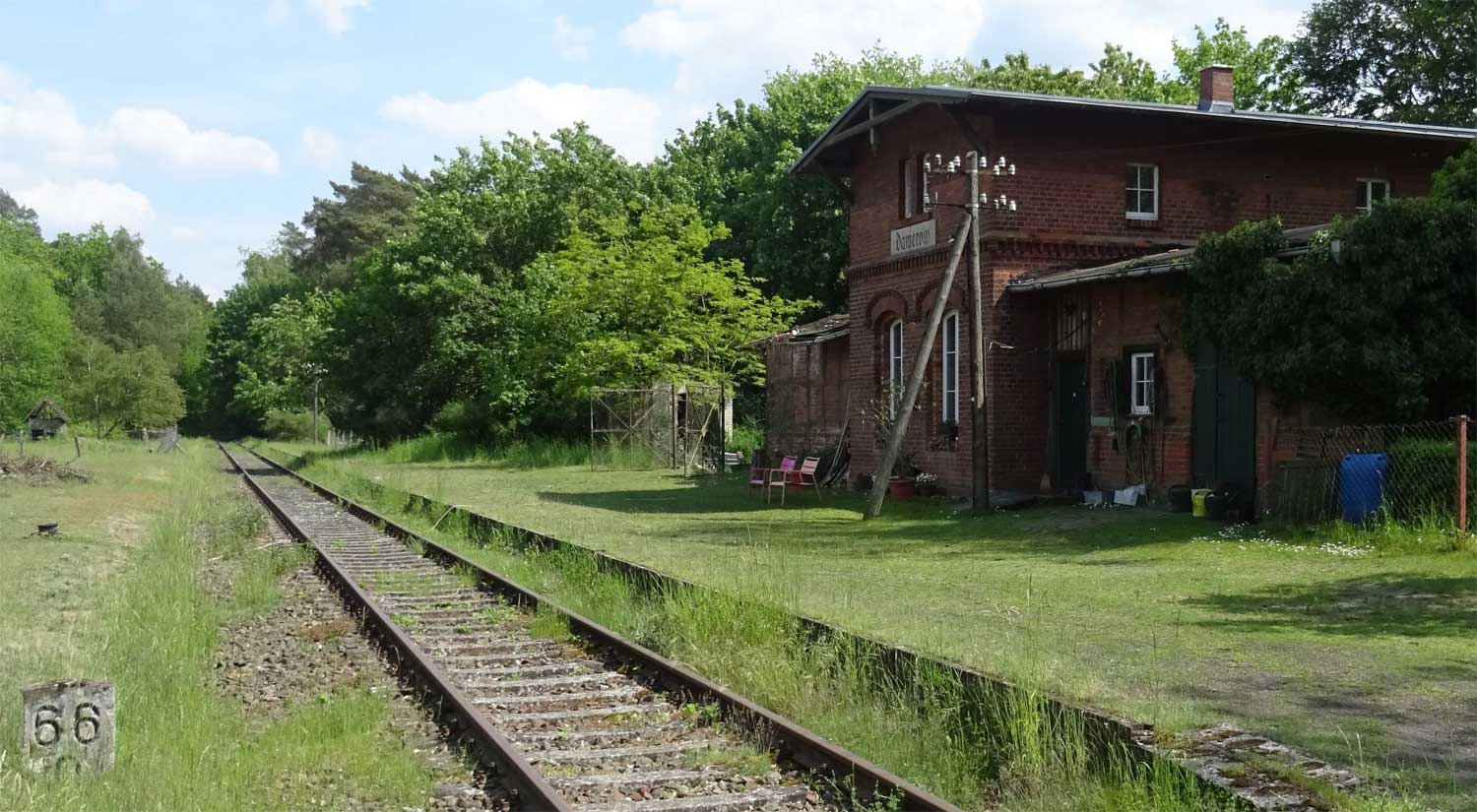 | km 24,60 der StreckeNeustadt (Dosse) 0,0 - Pritzwalk 41,81 - Meyenburg 61,46 - Grenze Preußen/Mecklenburg 63,536 = km 0,0 - Karow (Meckl) 24,60 - Güstrow 59,80 |