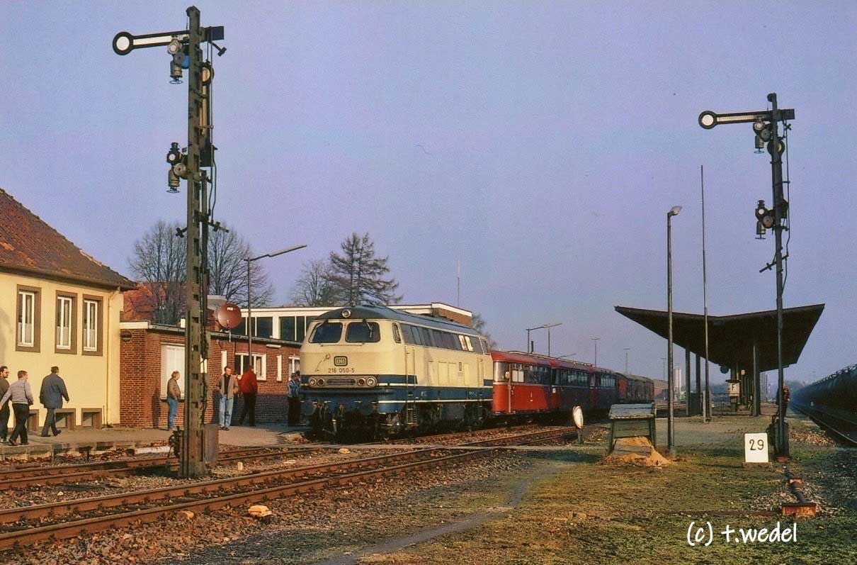 | Sulingen (Han) | 28,93 | km 66,38 der Strecke Bünde (Westf) 0,01 - Lübbecke (Westf) 18,53 - Rahden (Kr Lübbecke) 33,01 - Sulingen (Han) 66,38 - Bassum 86,82 |