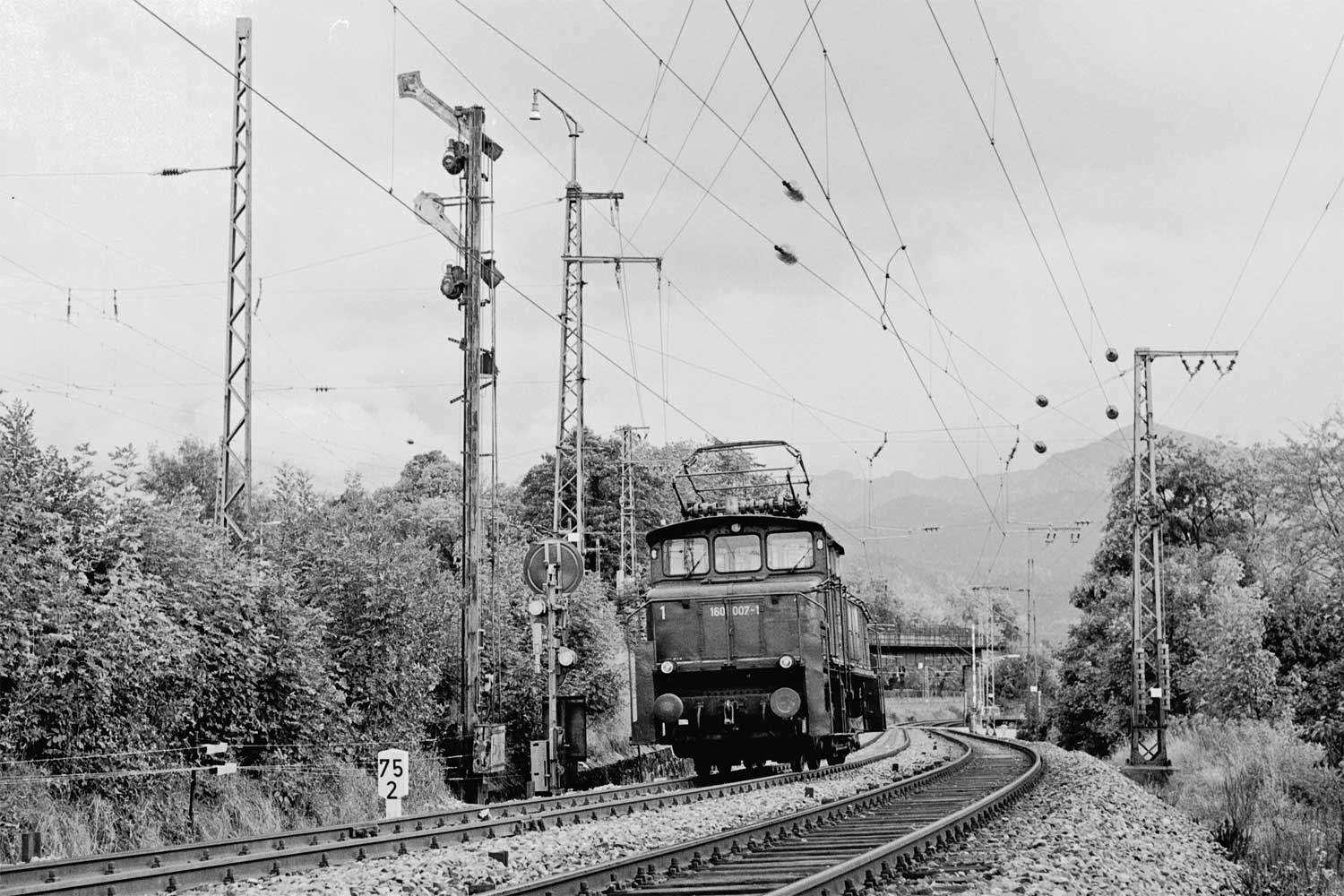 km 39,7 im Bf Tutzing - E44 076 am 18.08.1978