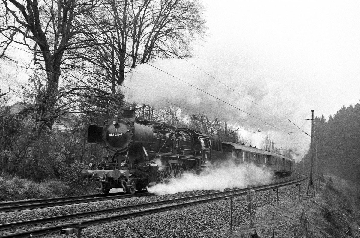 km 23,4 (Tafel rechts) und km 23,5 (Stein links) zwischen Gauting und Starnberg am ehemaligen Hp Mühlthal (Oberbay) - 41 018 mit Sonderzug