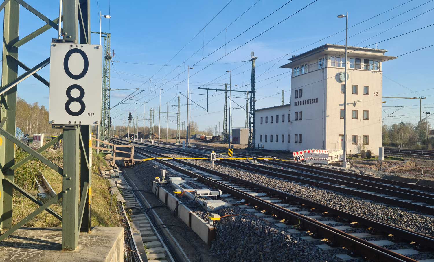 | Chemnitz Hbf | 61,80 | km 79,73 der Strecke Dresden Hbf -0,048 - Chemnitz Hbf 79,73 - Zwickau Hbf 128,35 - Abzw. Werdau Bogendreieck (Neumarker Spitze) 136,23 (DW) |