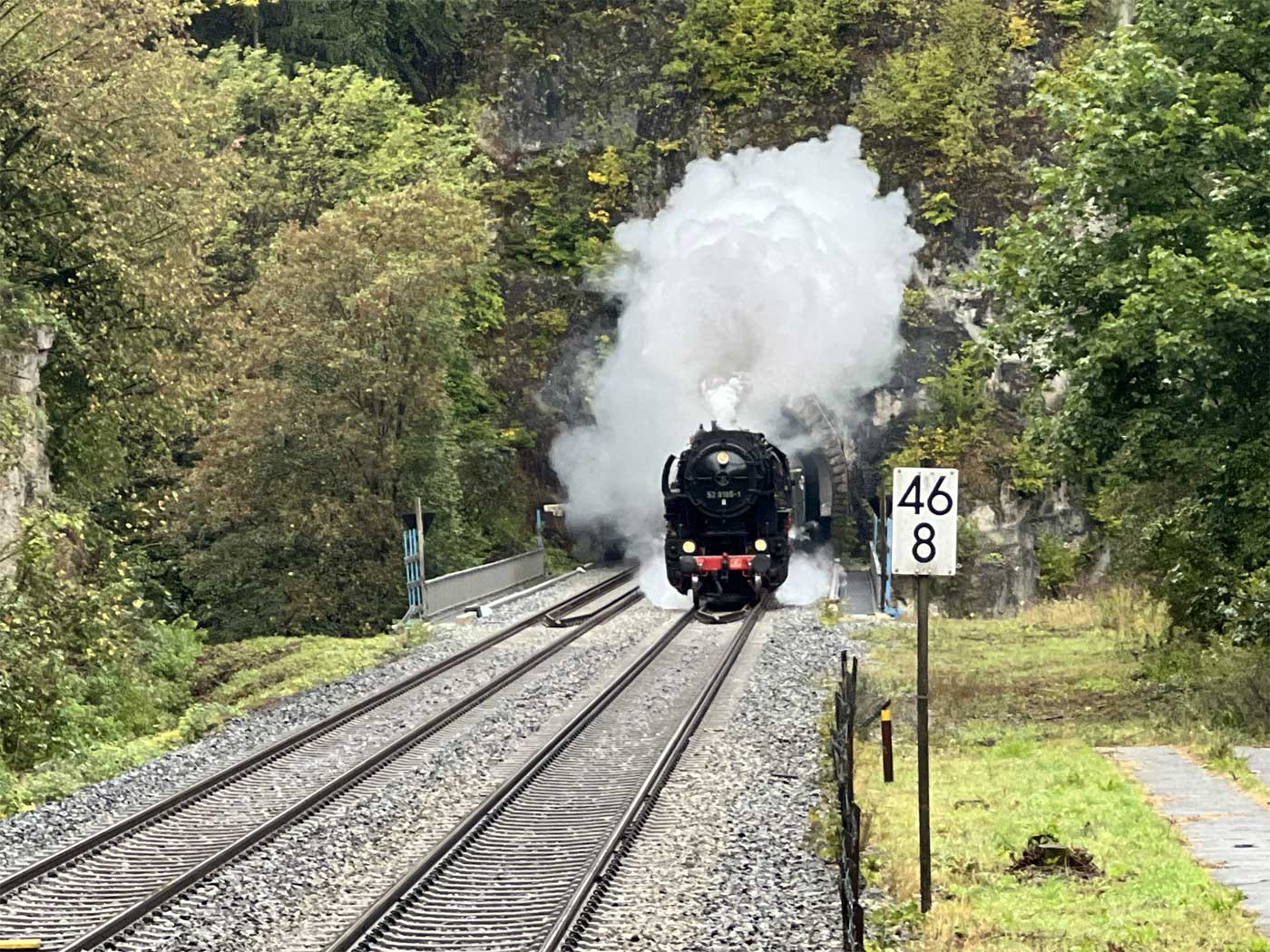 wurde wegen der erforderlichen Dampfheizung ab/bis Schirnding von tschechischen Dampfern befördert.