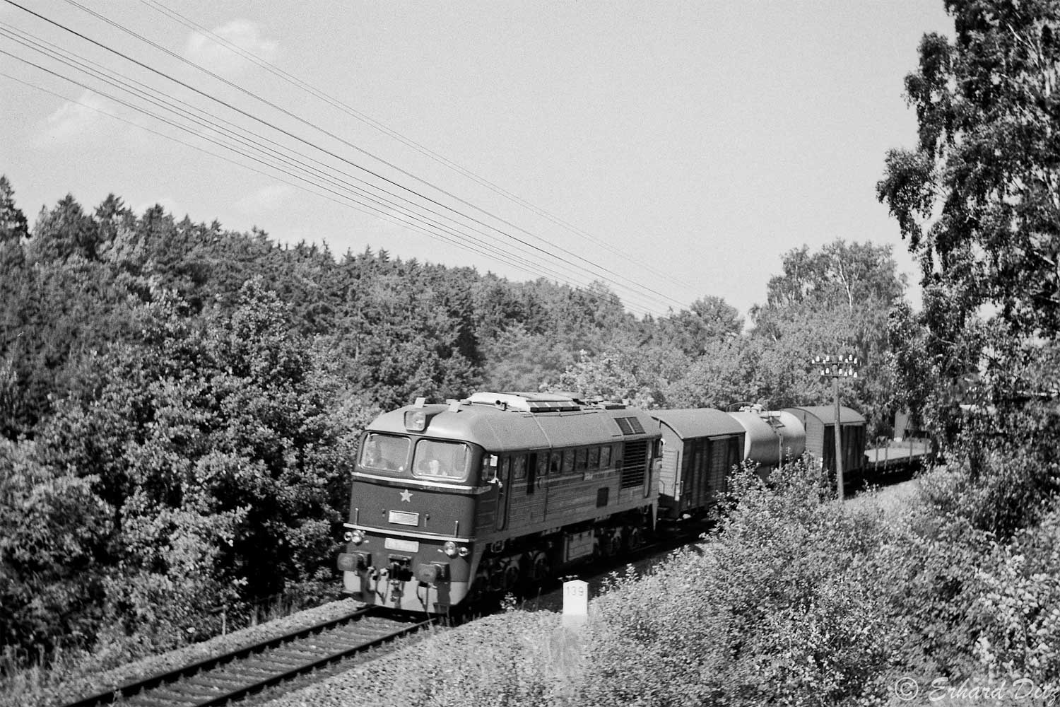051 210 vom Bw Kirchenlaibach mit ihrem Güterzug am km 94,8