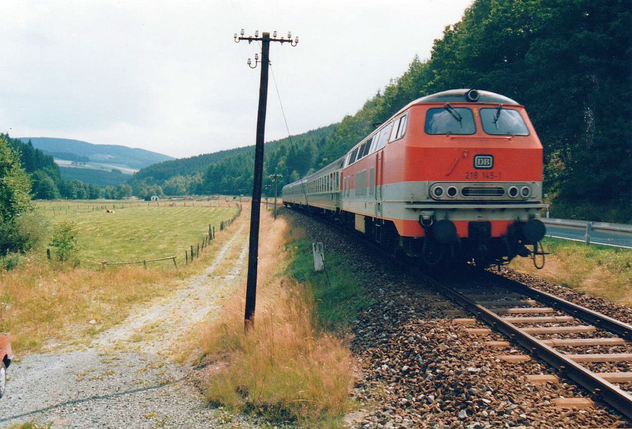 km 11,3 bei Wulmeringhausen - 218 140 mit DZ 28045 (Oberhausen - Winterberg)