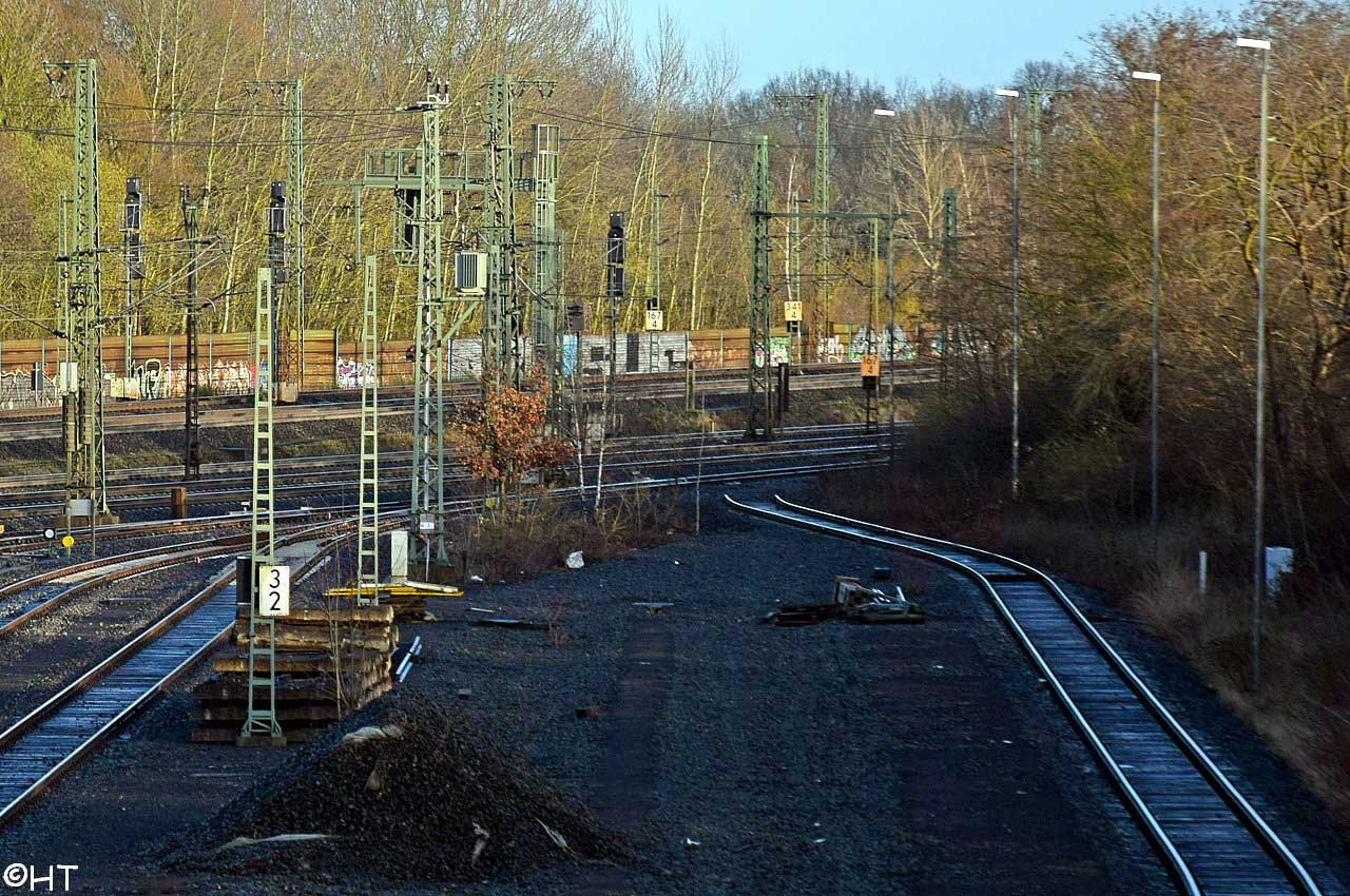 Zwischen km 352,4 und km 352,5 verzweigt sich die Strecke von Wanne-Eickel Hbf in verschiedene Streckenäste mit weiterlaufender Kilometrierung