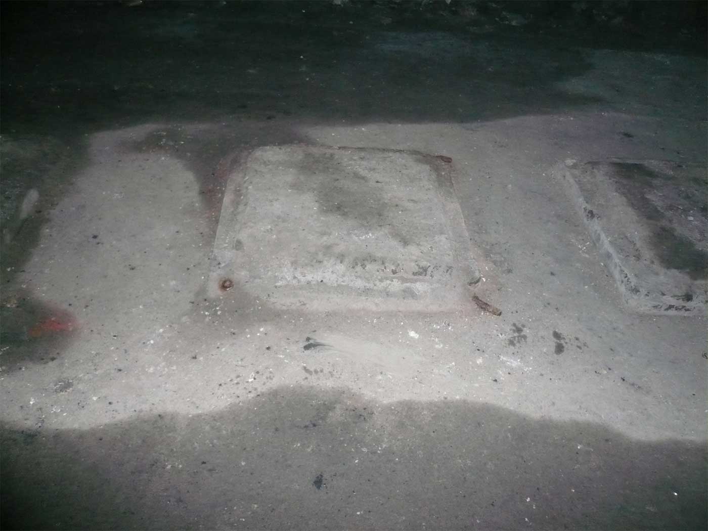 km 352,0 (links, Tafeln und Stein) an den Norderelbbrücken