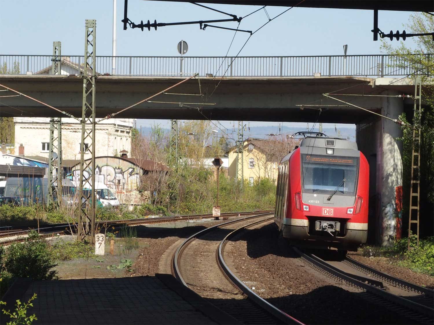 Rechts einmündender Streckenast über Wiesbaden Hbf