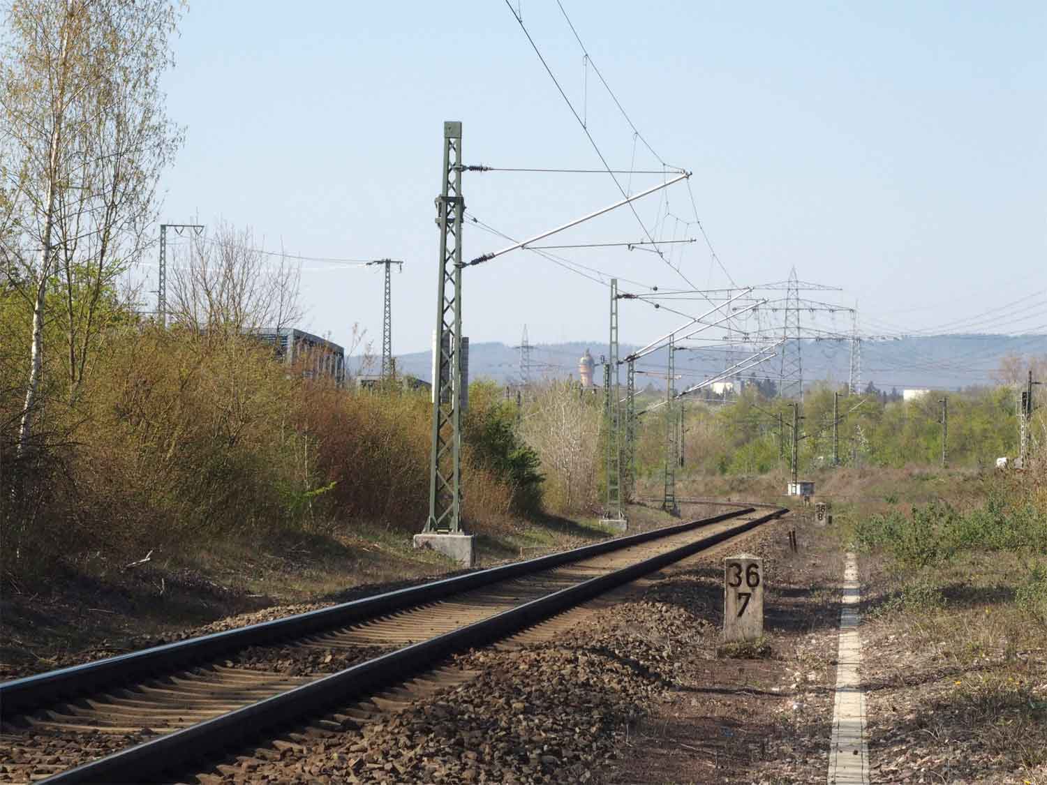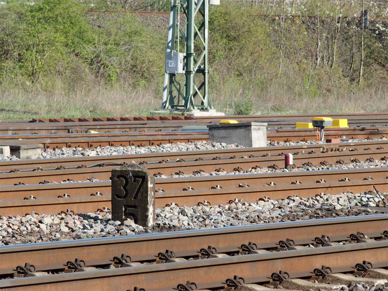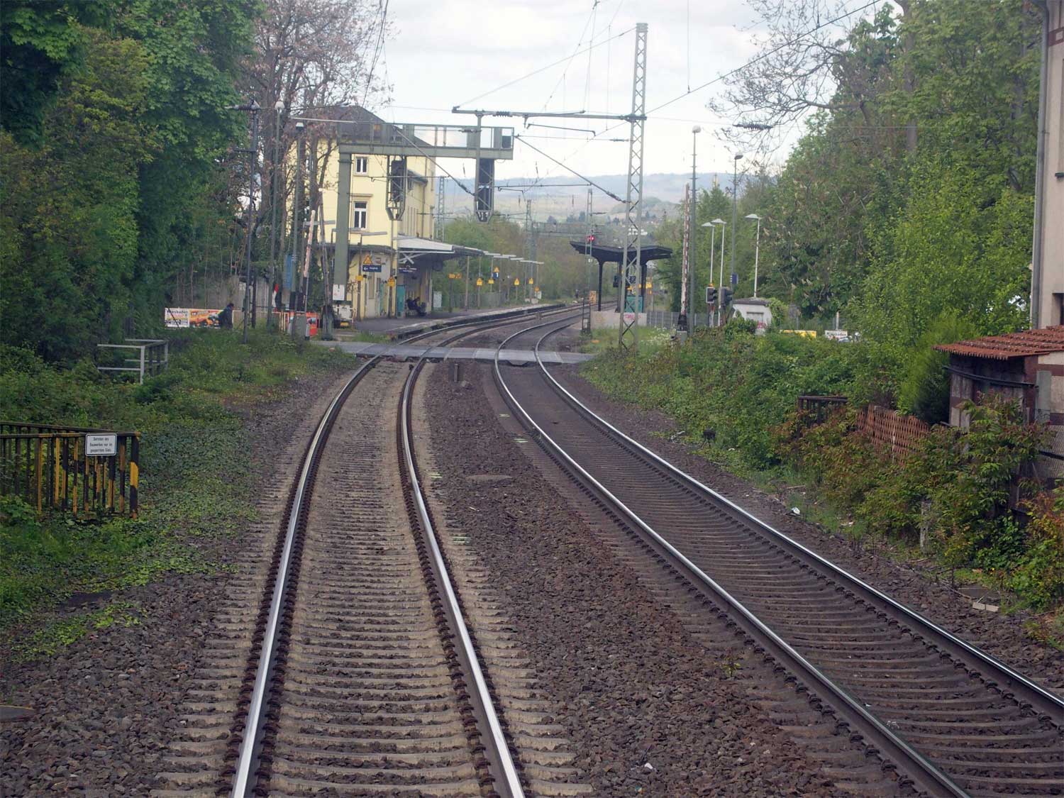 km 37,7 (Stein, Richtungsgleis) und km 37,8 (Stein, Richtungsgleis) in Wiesbaden Ost - Blick Richtung Niederlahnstein
