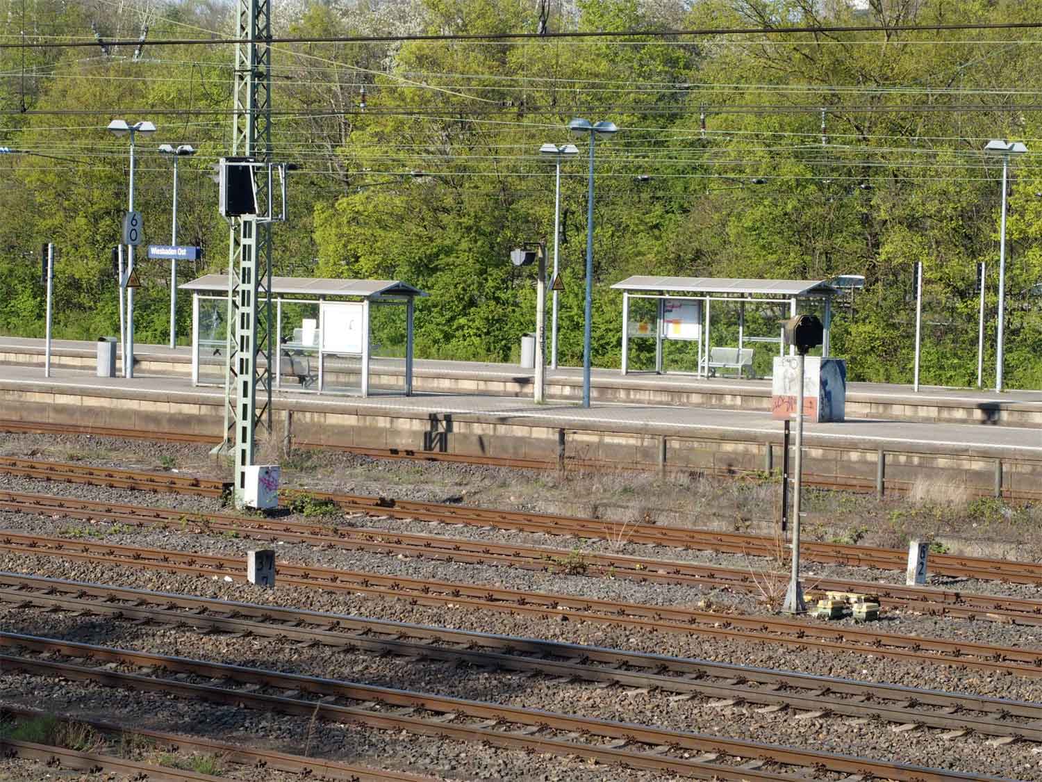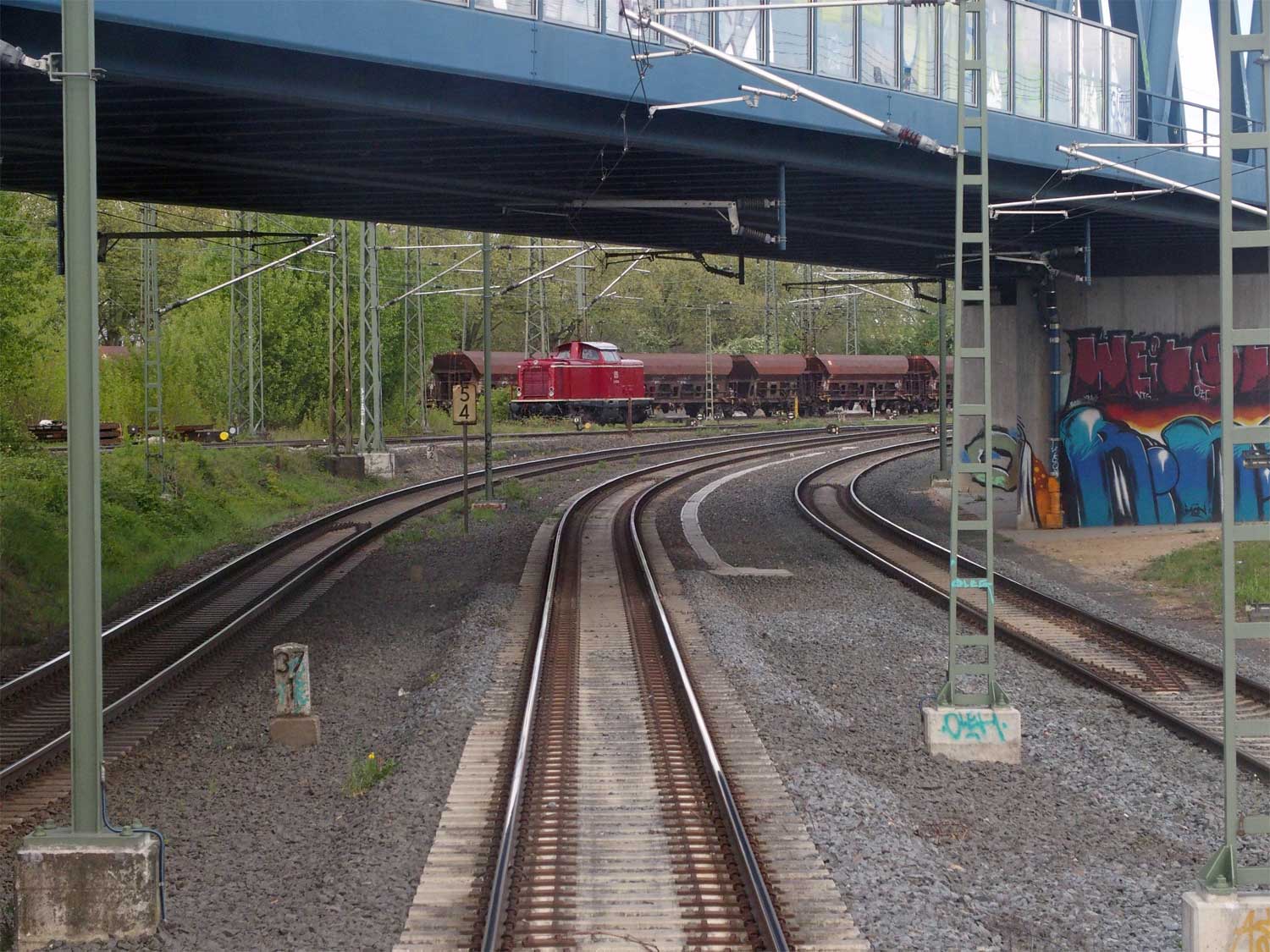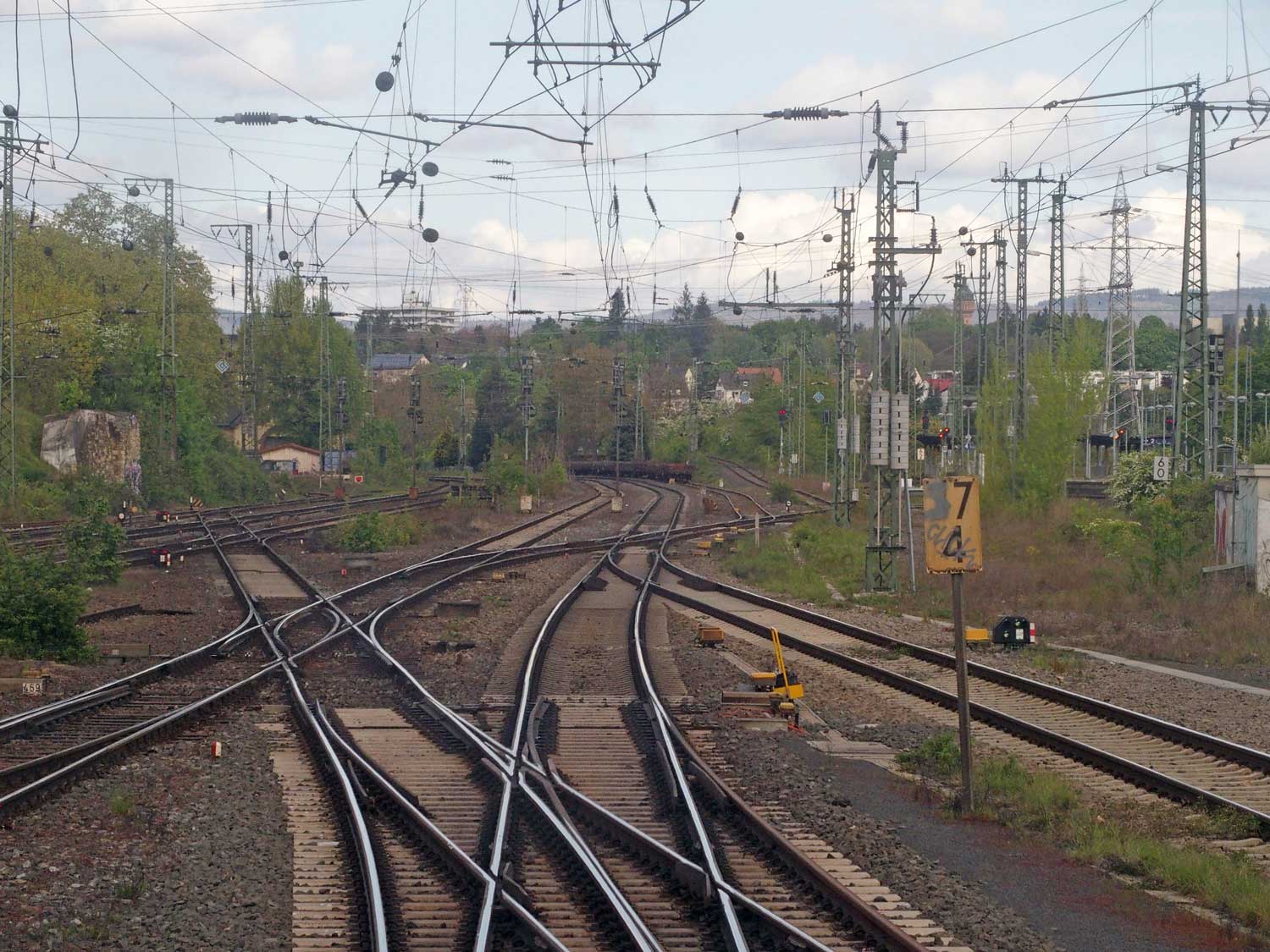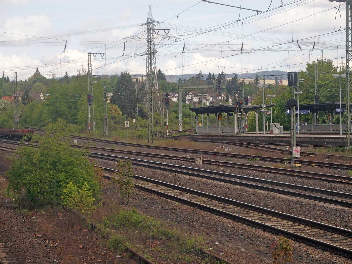 km 37,7 (Stein, Richtungsgleis) und km 37,8 (Stein, Richtungsgleis) in Wiesbaden Ost - Blick Richtung Niederlahnstein