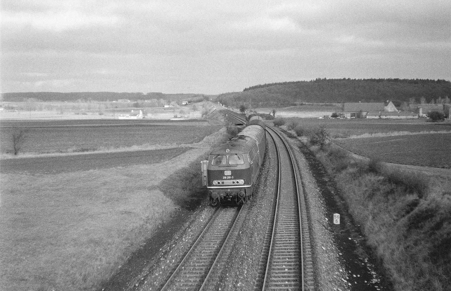 Nürnberg Hbf 0,0 - Ansbach 43,71 - Landesgrenze Bayern/Baden-Württemberg km 80,072 = km 10,310 - Crailsheim 0,0 (1985)