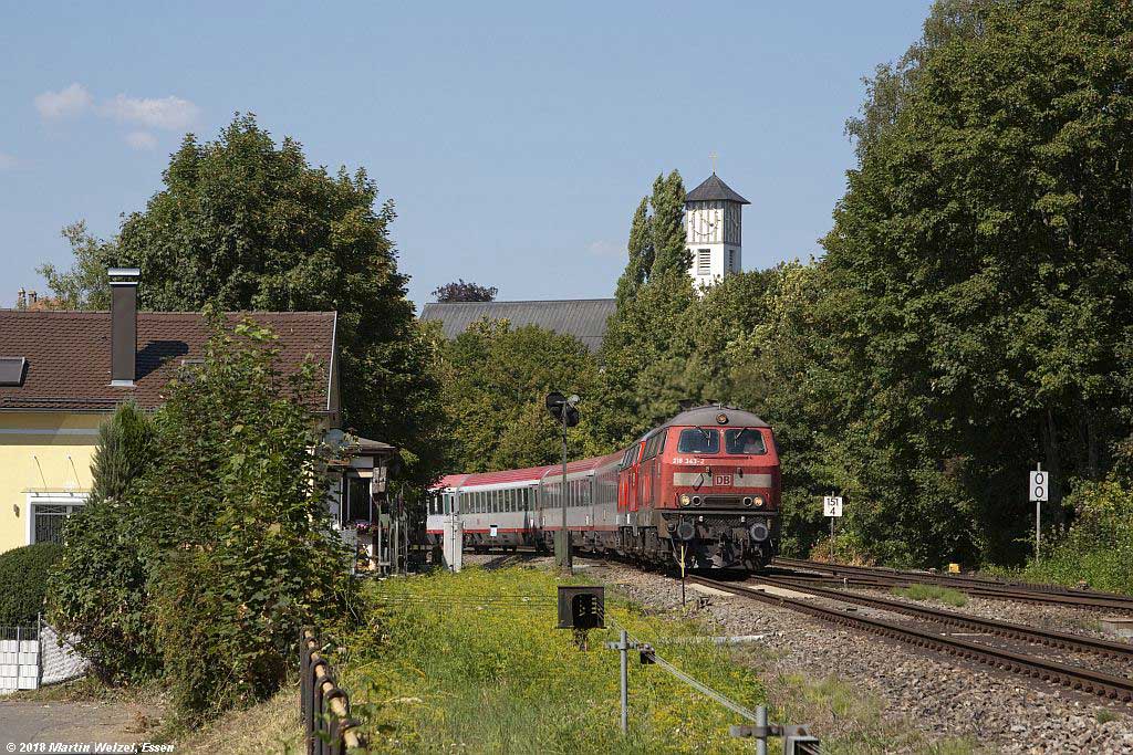 km 151,6 am Abzw Lindau-Aeschach - 218 438 schiebt IRE4225 Stuttgart-Lindau