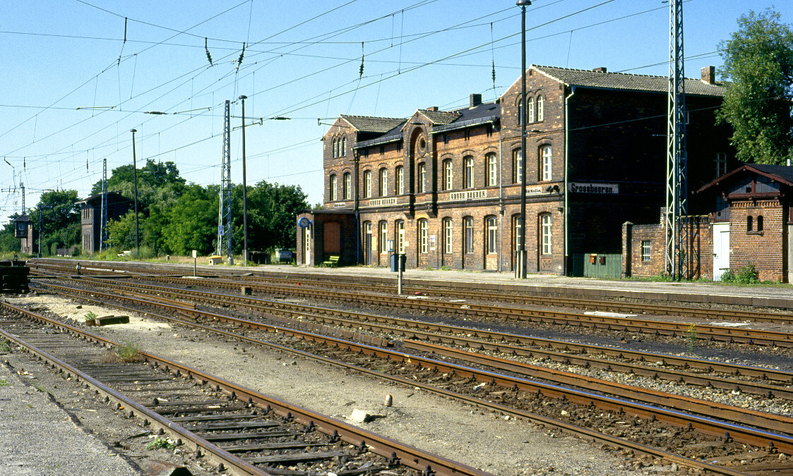 | Wittenberg (Provinz Sachsen) | 94,76 | km 201,93 der Strecke Kohlfurt 0,03 - Hoyerswerda 72,77 - Falkenberg (Elster) (unten) 147,88 - Wittenberg (Provinz Sachsen) [heute: Lutherstadt Wittenberg ]201,93 - Dessau-Roßlau [heute: Roßlau (Elbe)] 233,70 |