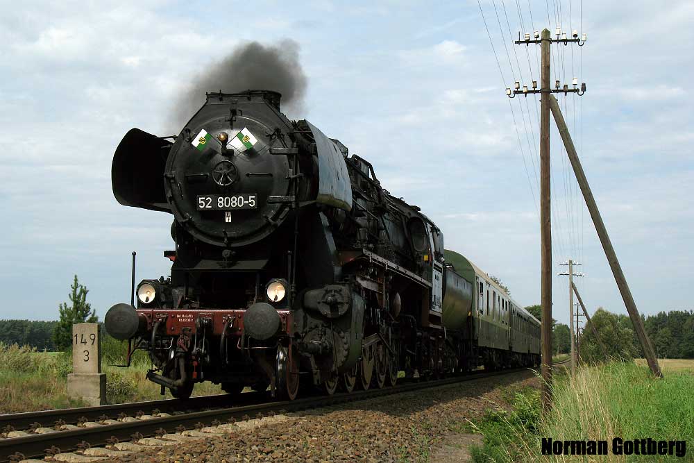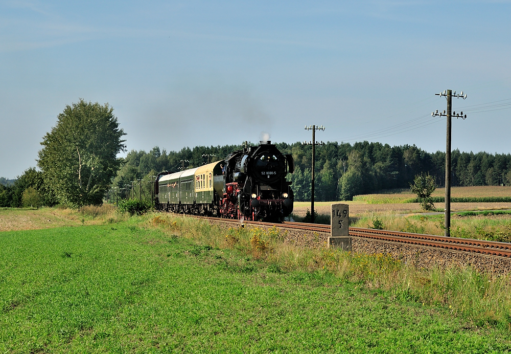 52 8080 in Cunnersdorf (b Kamenz) am km 152,7 - Blick Richtung Lübbenau - Berlin
