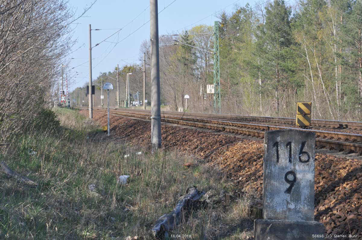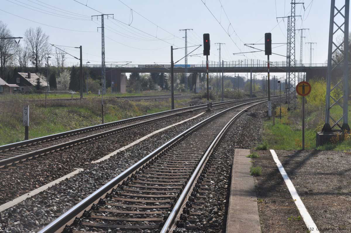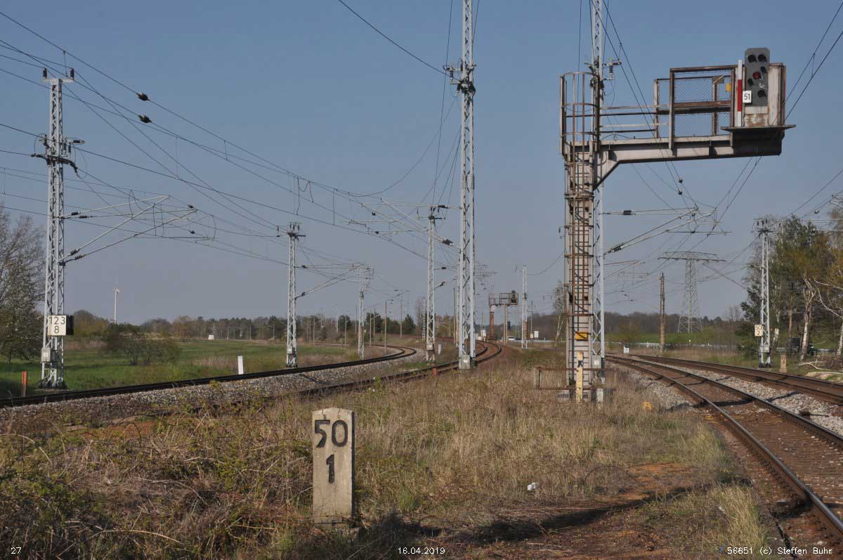 | km 87,91 der Strecke Strecke Kohlfurt 0,03 - Hoyerswerda 72,76 - Falkenberg (Elster) (unten) 147,88 - Wittenberg (Provinz Sachsen) [heute: Lutherstadt Wittenberg] 201,93 - Dessau-Roßlau [heute: Roßlau (Elbe)] 233,70 | ||