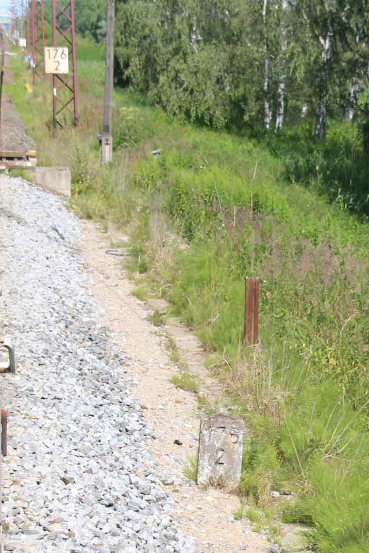 km 211,0 (Tafel); km 211,2 (Tafel) und km 211,3 (Stein) zwischen Greifswald und Mesekenhagen