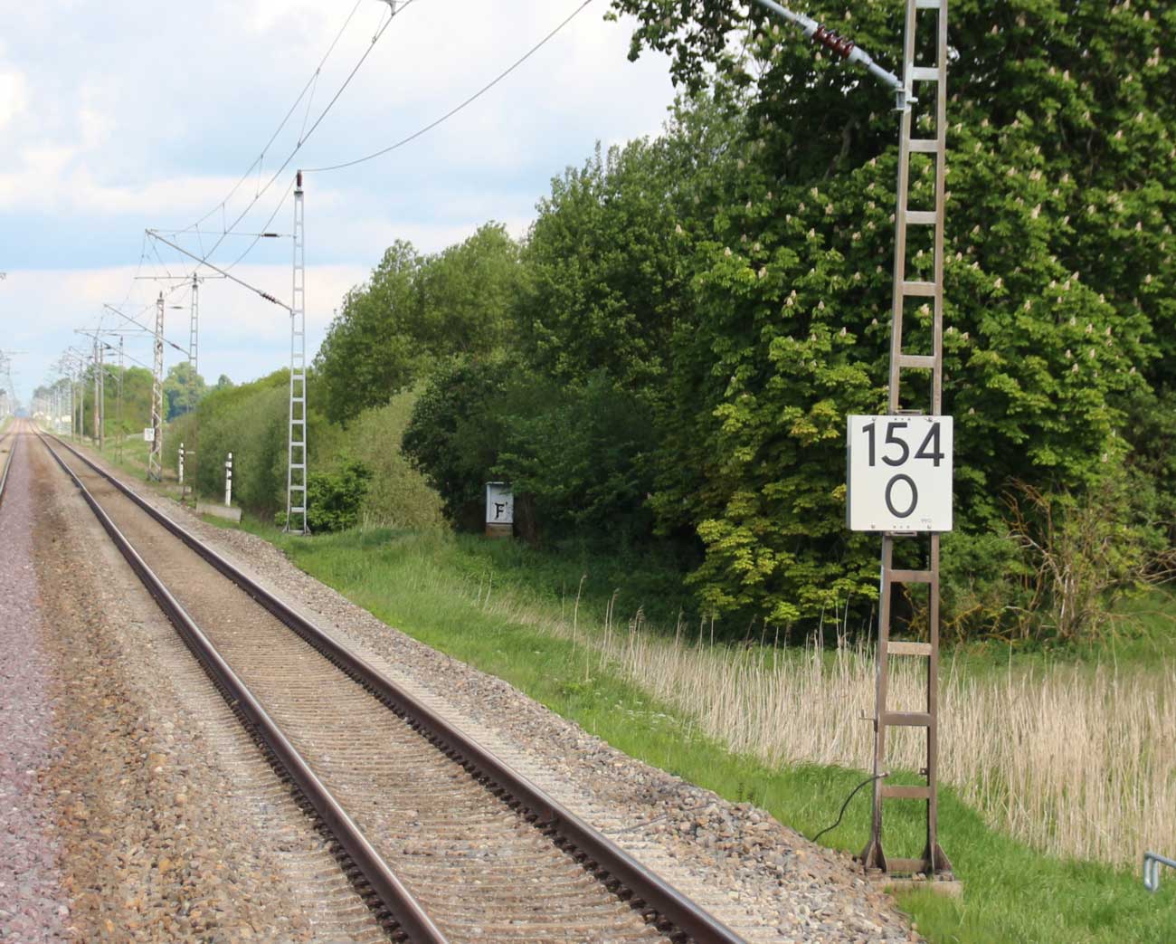 km 220,0 im Vordergrund gehört zur Nordbahn Berlin - Stralsund - Sassnitz