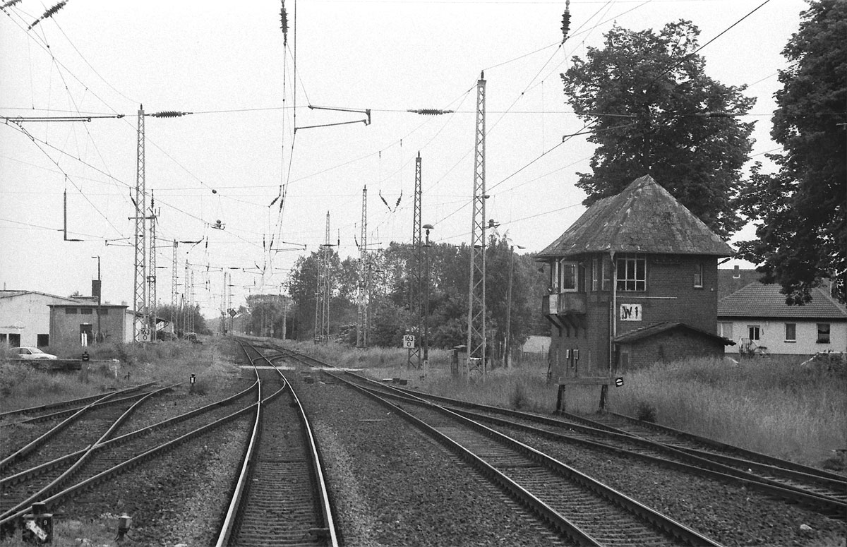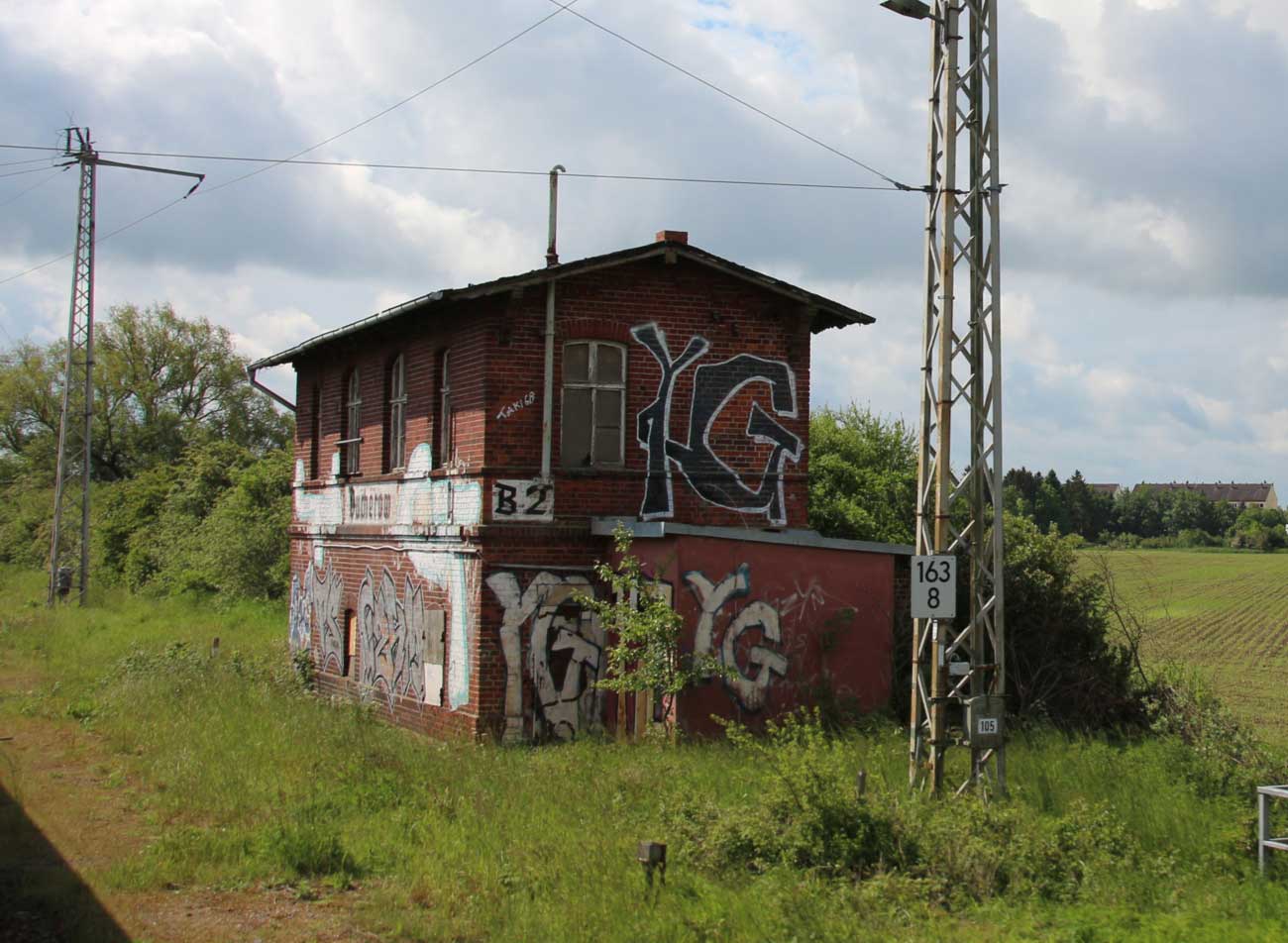 Rechts am Oberleitungsmast ist noch ein Stein zu erkennen.
