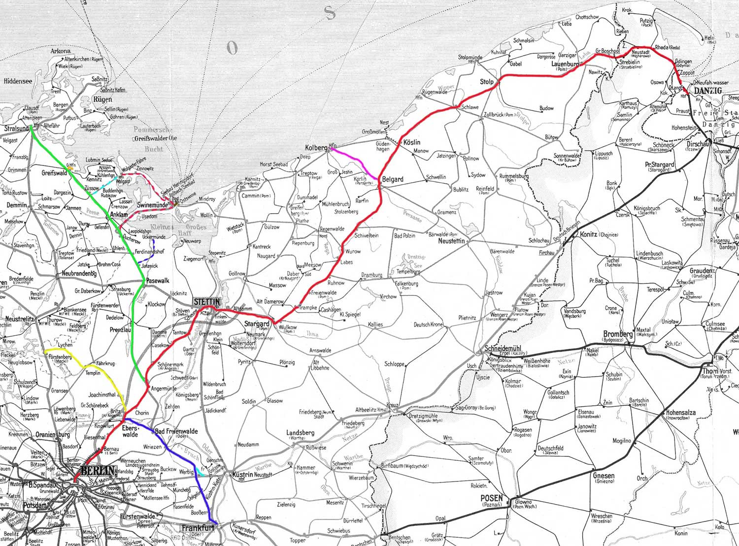 Berlin Stettiner Bf - Angermünde - Stettin Hbf - Belgard - Stolp - Danzig Hbf (Teil 2 ab km 20,0)