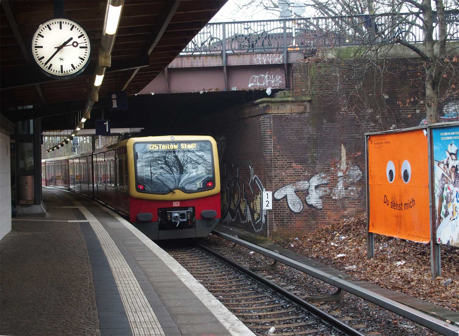 | km 0,52 der Nordsüd-S-Bahn (Wannseebahn) Nordbf (Nordsüd-S-Bahn) 0,0 - Berlin-Friedrichstraße 2,02 - Kilometerwechsel km 7,67 (Nordsüd-S-Bahn) = km 3,30 (Wannseebahn) - Berlin-Wannsee 18,61 | ||