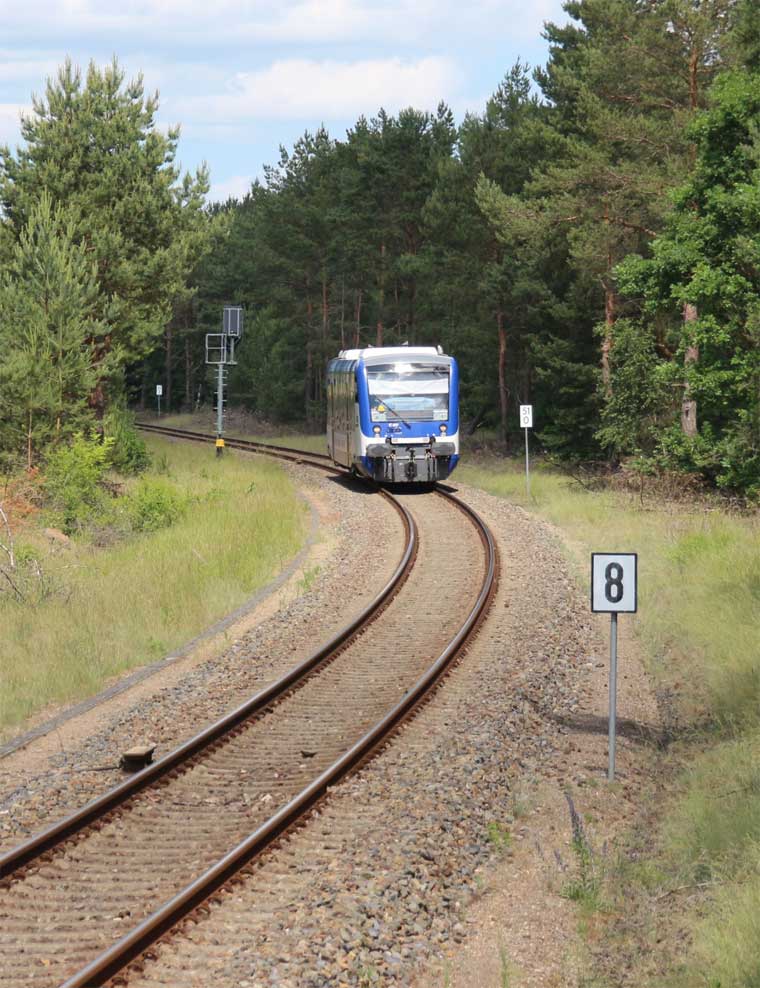 bei km 50,4 der abgehenden Strecke bei Britz - Blick Richtung Fürstenberg (Havel)
