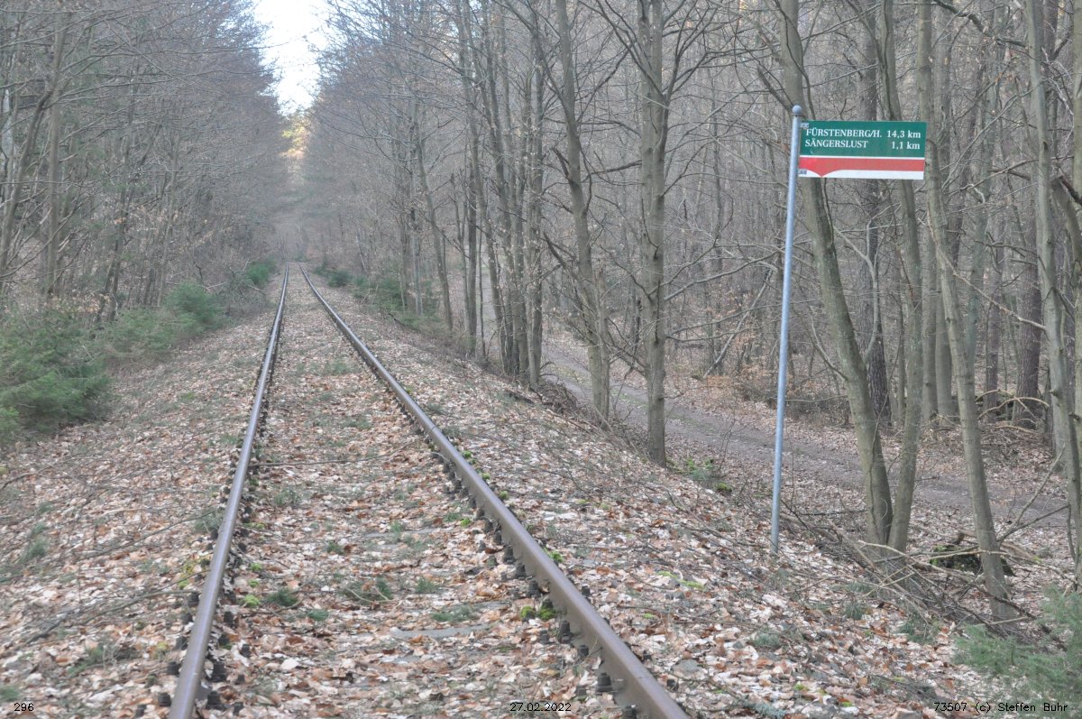 | Abzw Vdü | 121,12 | Verbindungskurve Fürstenberg (Havel), Abzw. Vdü - Fürstenberg (Havel), Stw. B3 [Strecke Berlin Eberswalder Straße 0,01 - Berlin-Schönholz 3,85 - Grenze Berlin West/DDR 16,31 (Streckenunterbrechung) - Oranienburg 27,41 - Löwenberg (Mark) 44,25 - Neustrelitz 98,53 -Neubrandenburg 133,73 - Stralsund 222,64 - Saßnitz 272,72 - Saßnitz Hafen 274,46] |