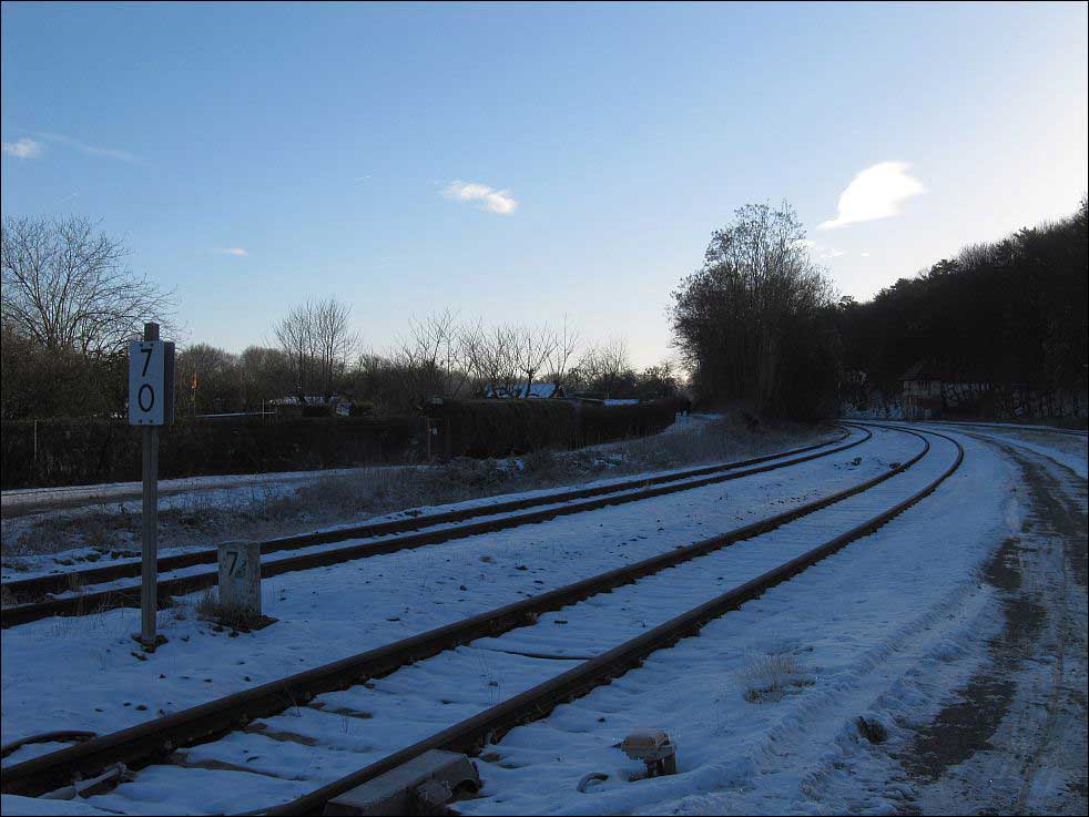 | km 0,0 der Strecke Braunschweig Hbf 0,0 - km 1,693 = km 5,078 (Fehllänge 3385 m) - Braunschweig-Gliesmarode 7,29 - Isenbüttel-Gifhorn 32,03 | ||