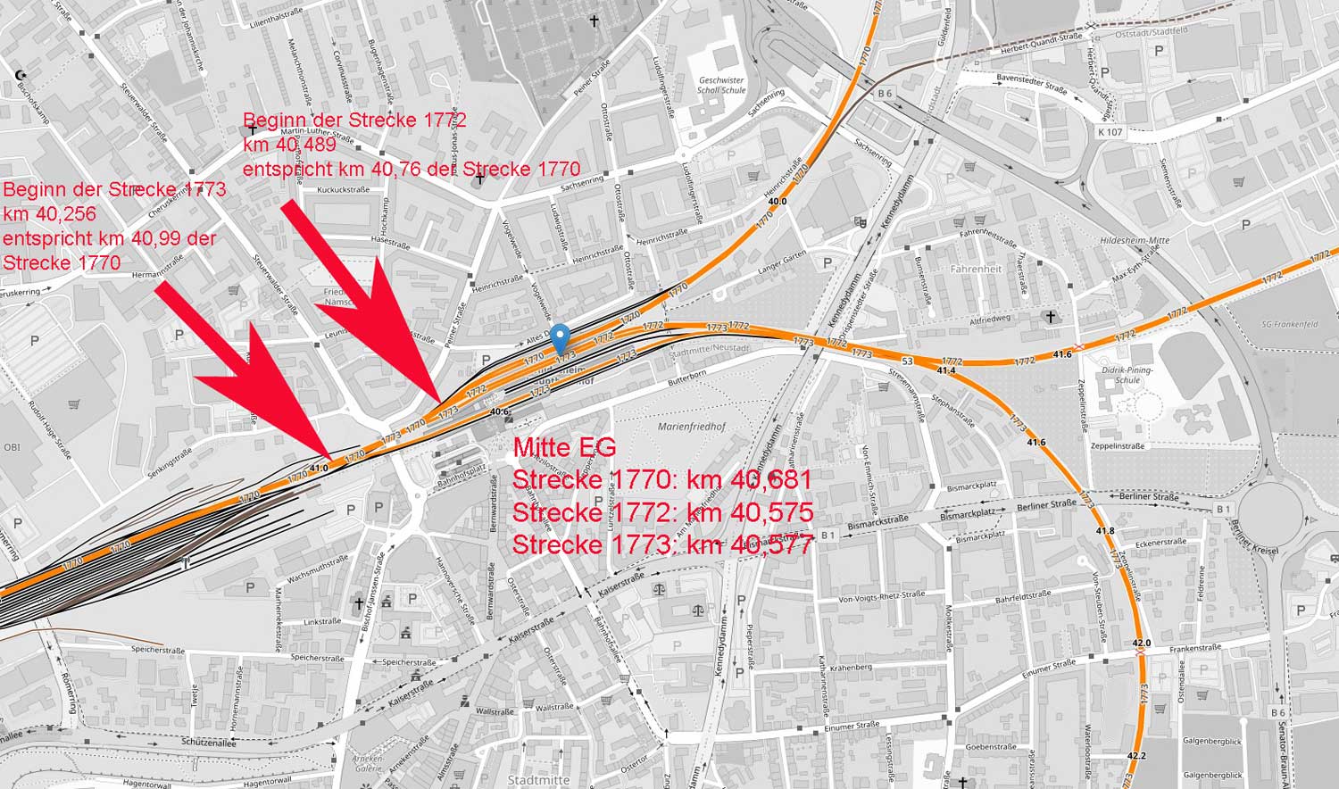 km 40,7 in Hildesheim Hbf