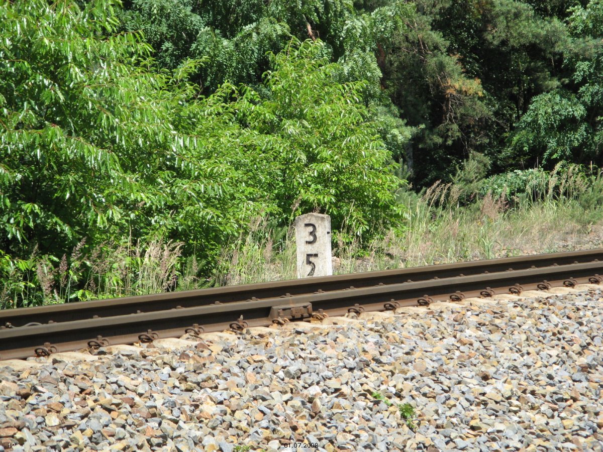 km 35,83 der abgehenden Strecke Knappenrode 0,0 - Weißkolm 3,67 - Abzw Spreewitz Süd 9,67 - Sabrodt 23,81 - Abzw Sornoer Buden Ost 35,83 - Abzw Sornoer Buden West 37,48 mit weiterlaufender Kilometrierung