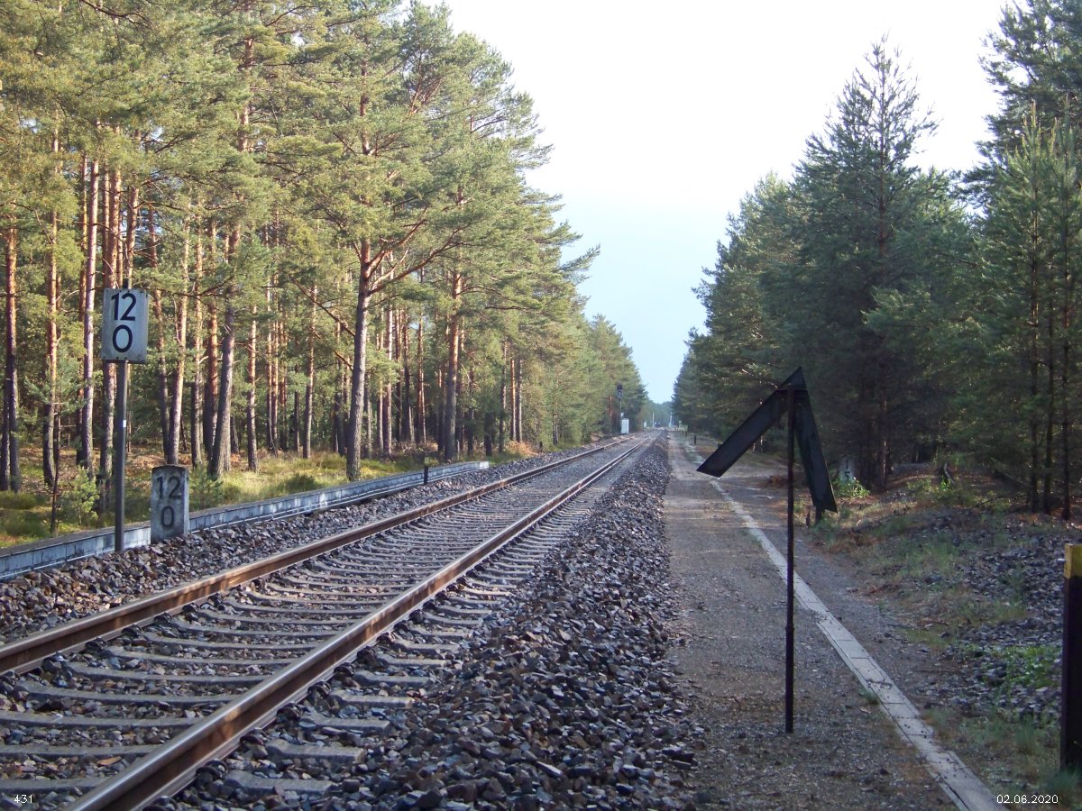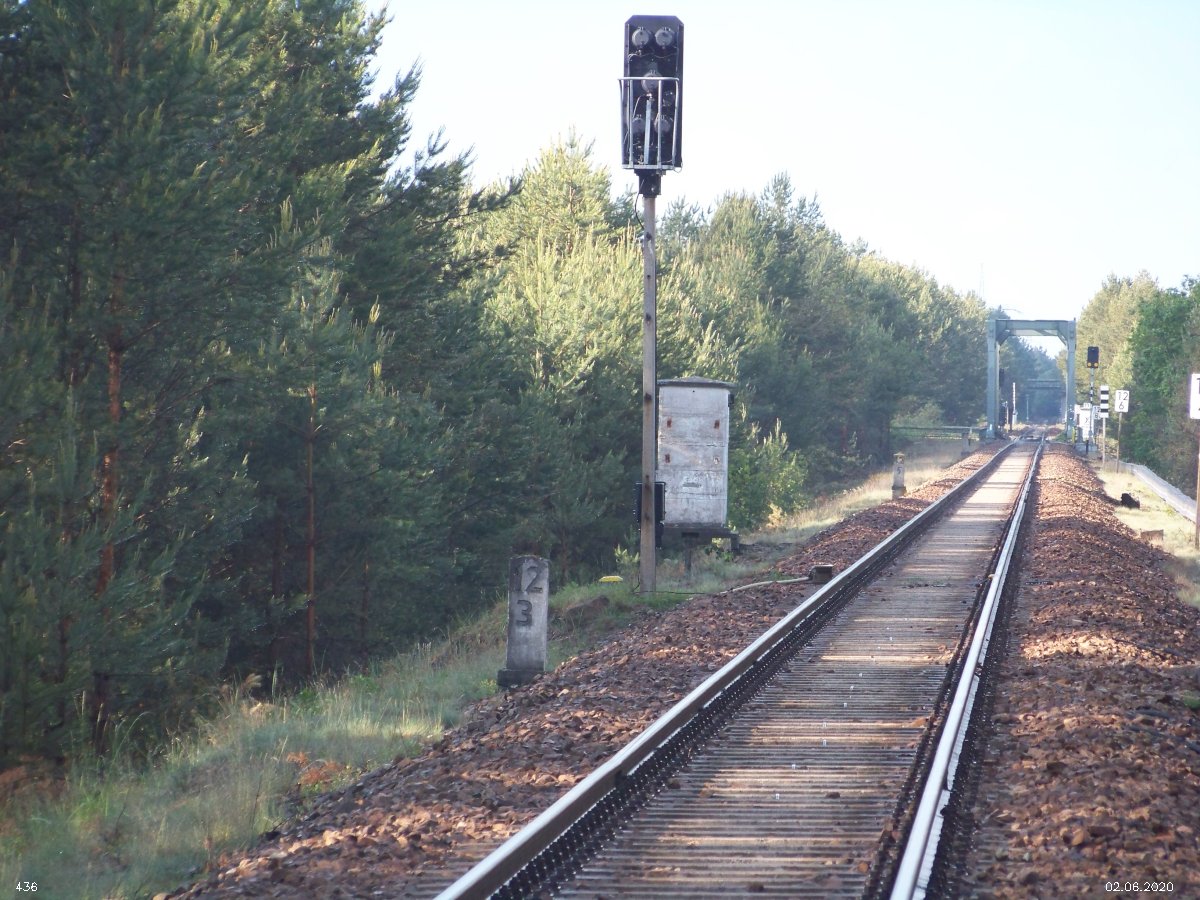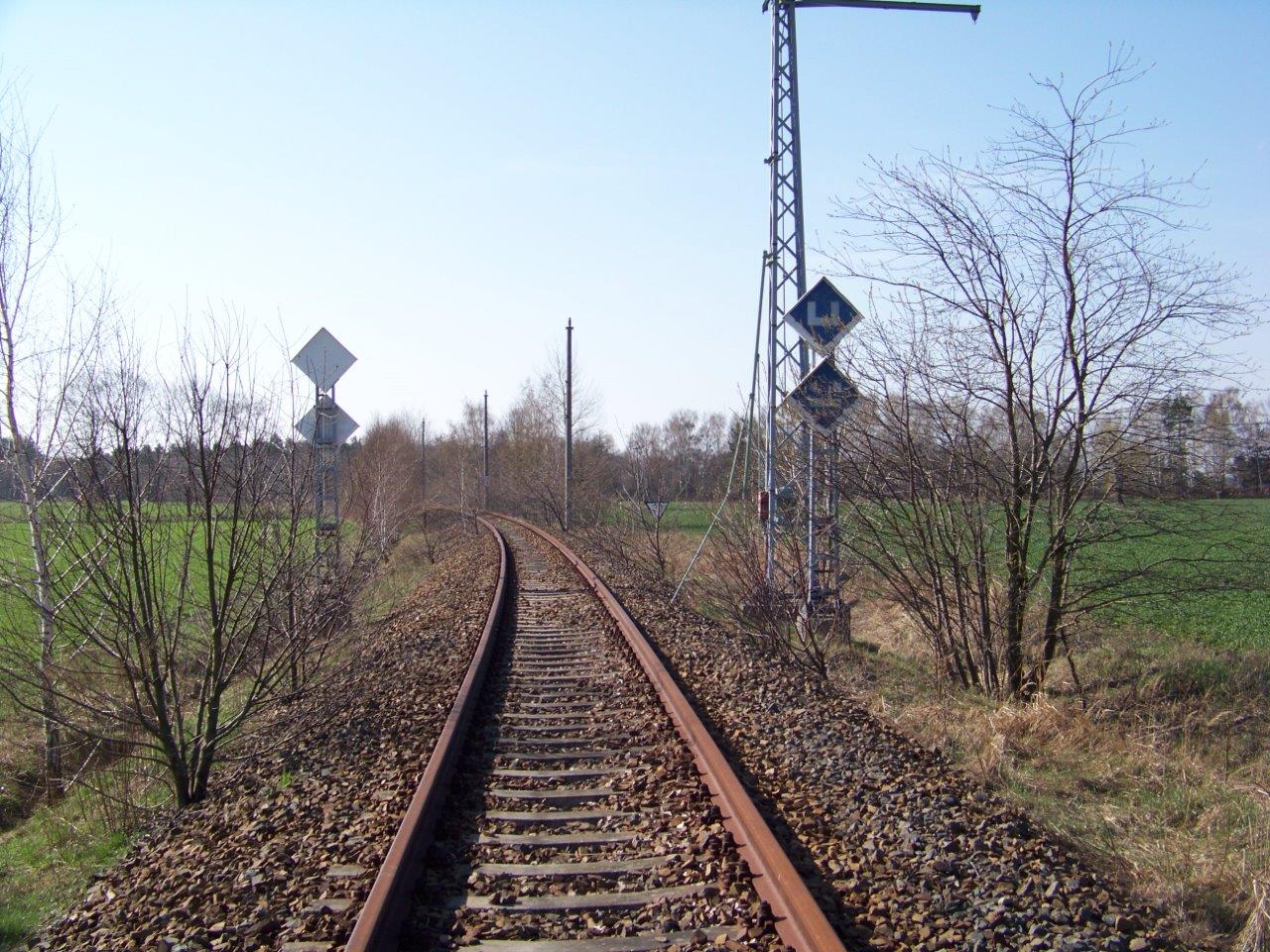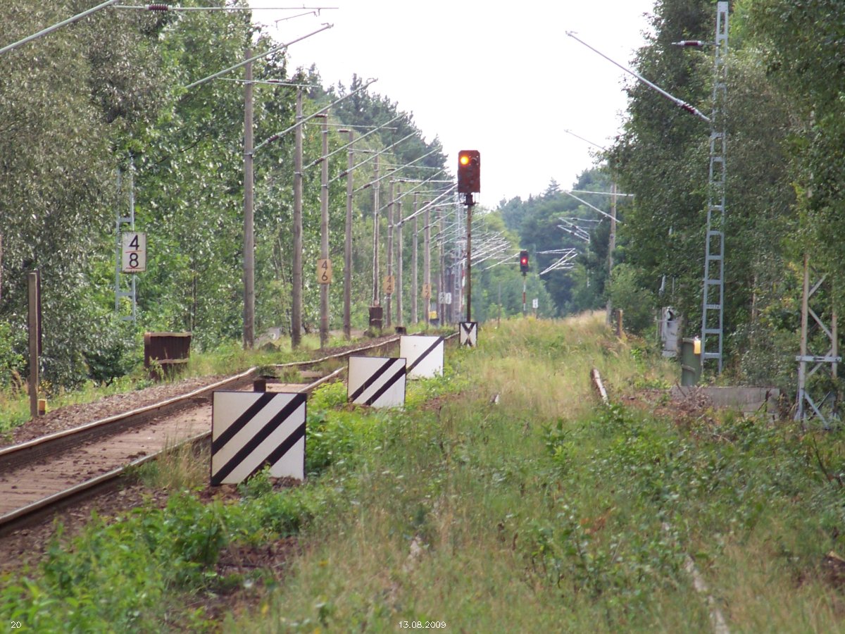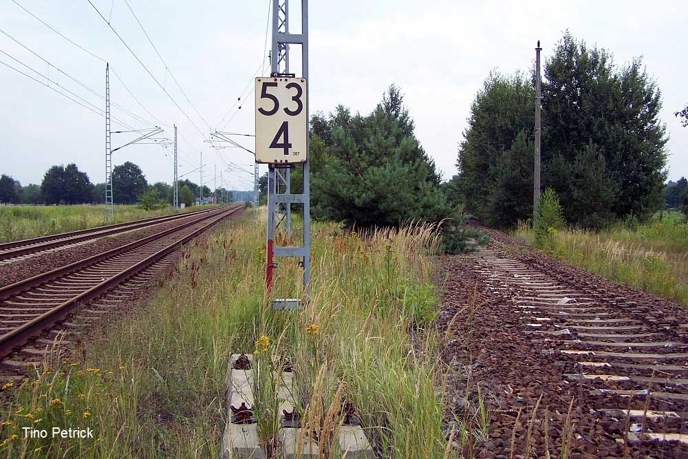 km 53,00 der Strecke Großenhain Cottb. Bf 0,0 - Senftenberg 45,29 - Cottbus 80,00 - Peitz 94,81 - Streckenunterbrechung - Grunow (Niederlausitz) 129,27 - Frankfurt (Oder) 152,78