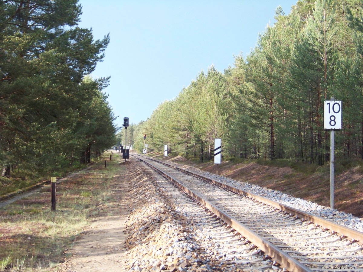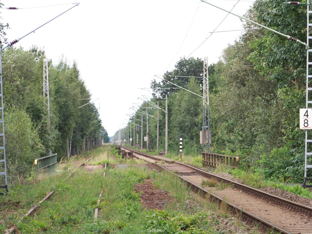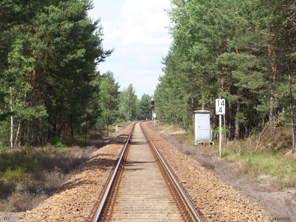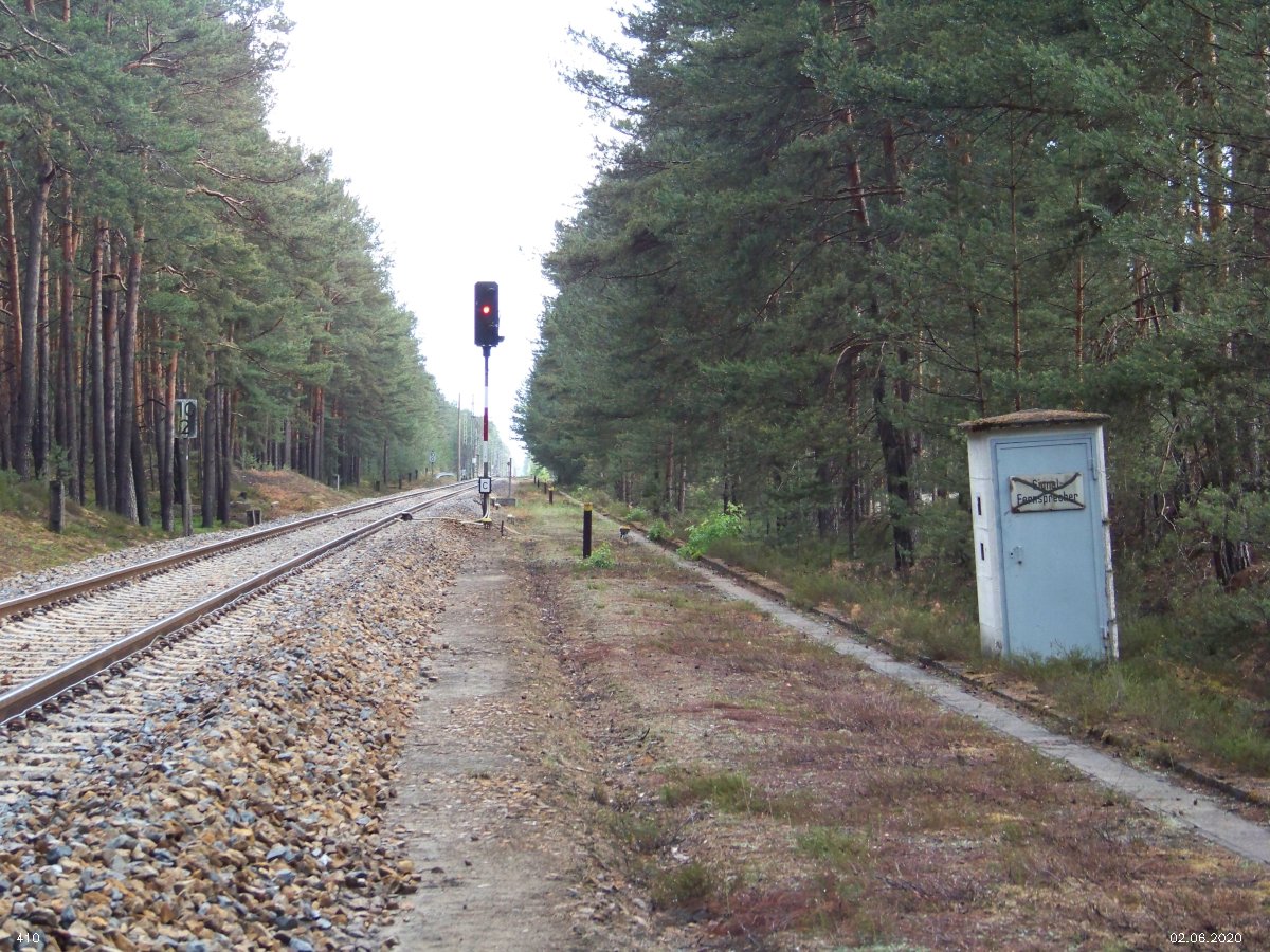 km 53,00 der Strecke Großenhain Cottb. Bf 0,0 - Senftenberg 45,29 - Cottbus 80,00 - Peitz 94,81 - Streckenunterbrechung - Grunow (Niederlausitz) 129,27 - Frankfurt (Oder) 152,78