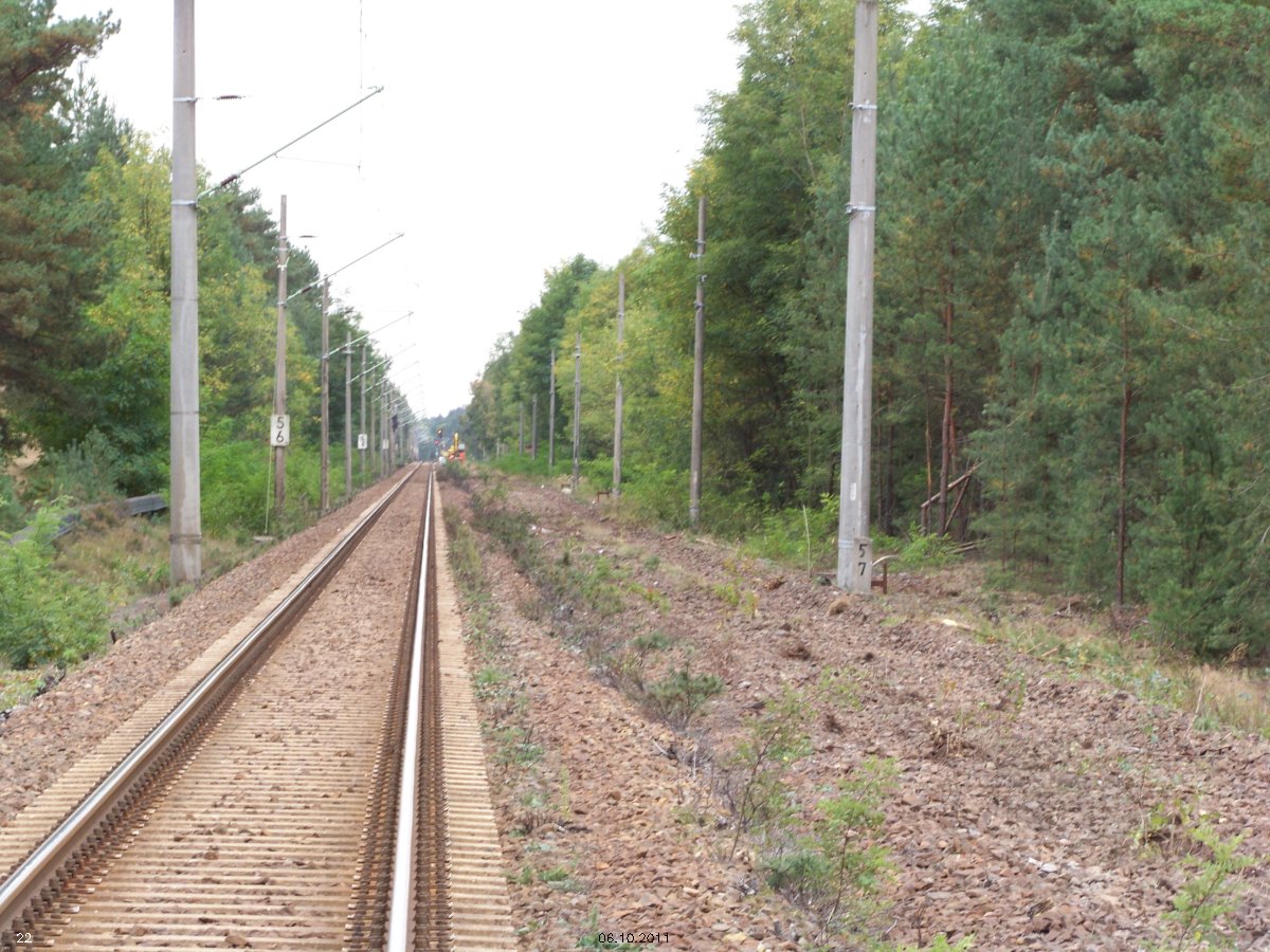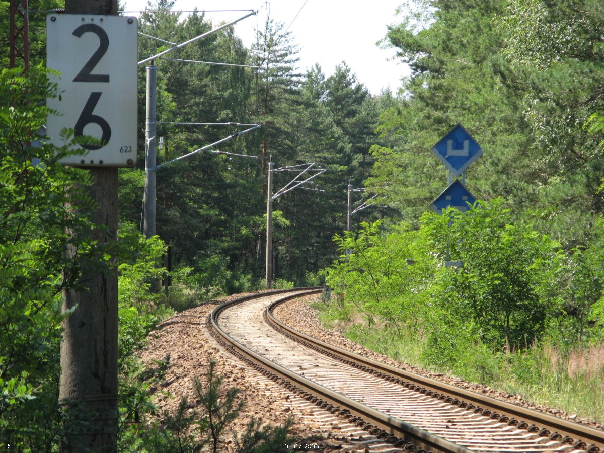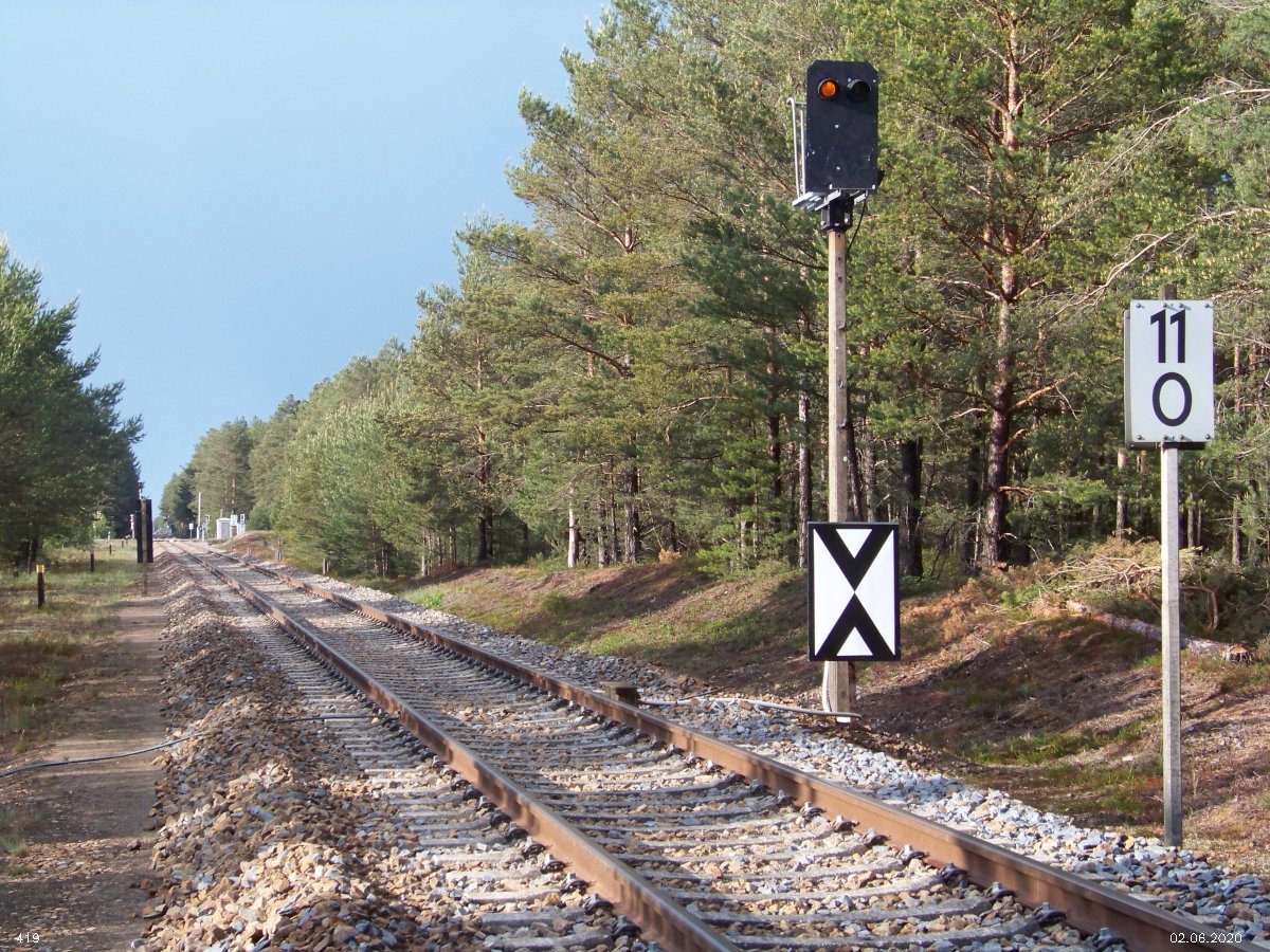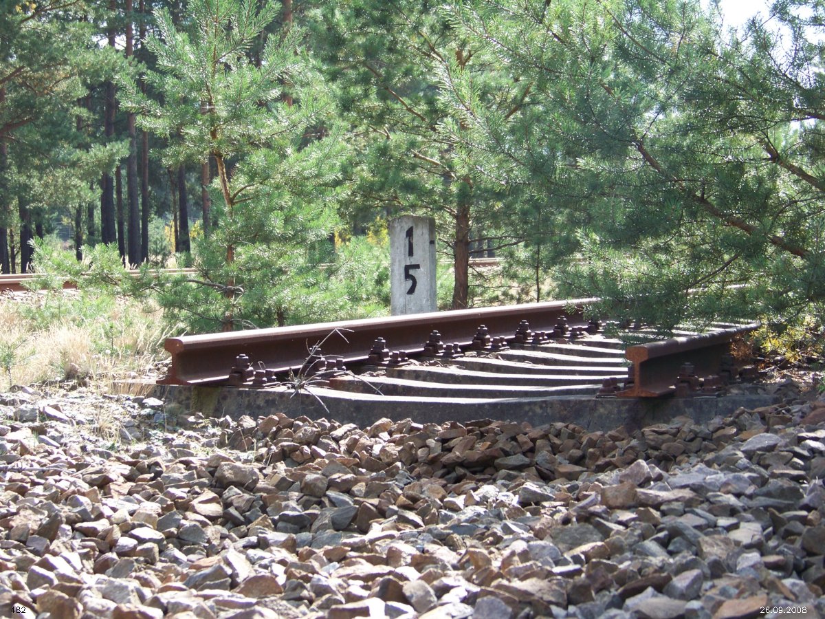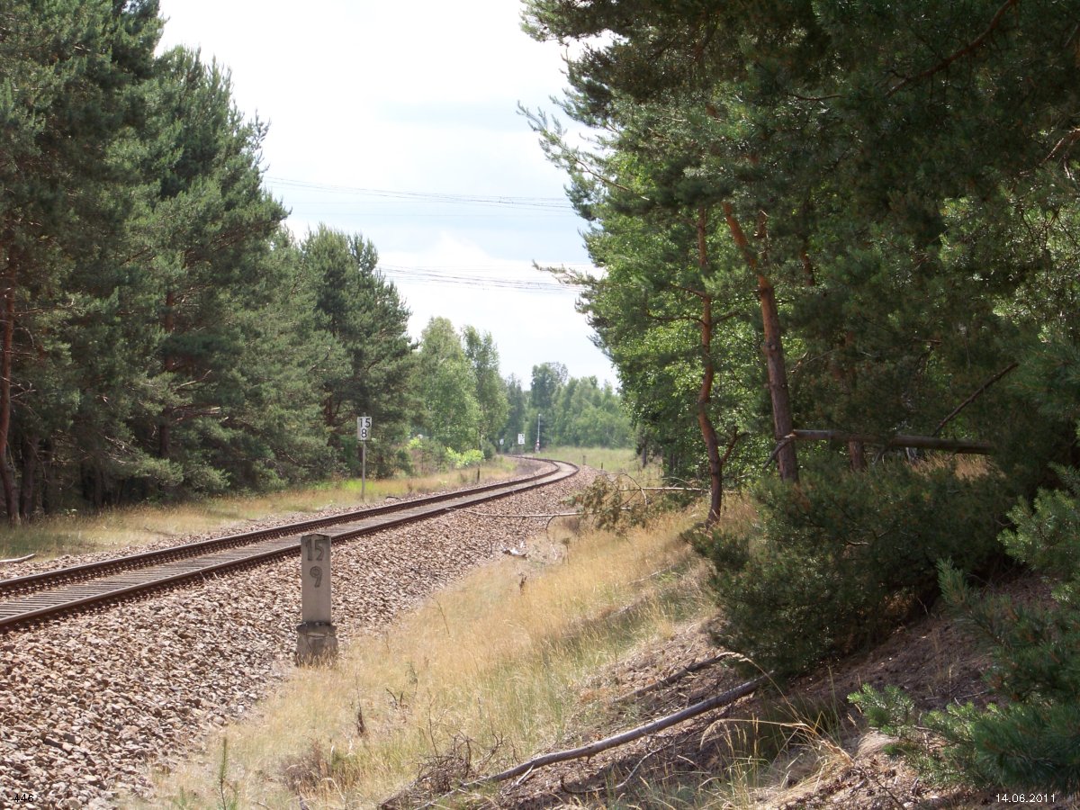 km 53,00 der Strecke Großenhain Cottb. Bf 0,0 - Senftenberg 45,29 - Cottbus 80,00 - Peitz 94,81 - Streckenunterbrechung - Grunow (Niederlausitz) 129,27 - Frankfurt (Oder) 152,78