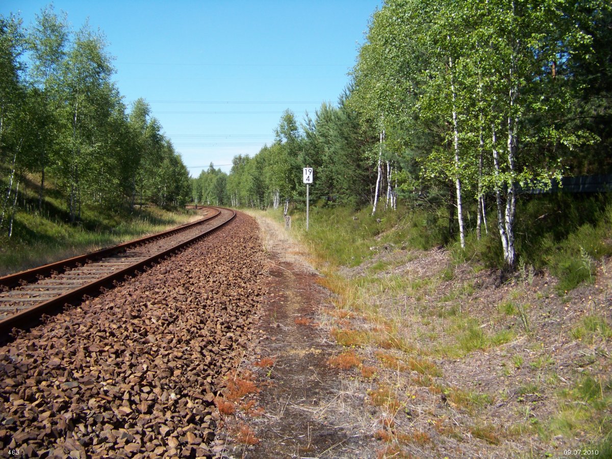 km 19,4 (Stein und Tafel) zwischen Abzw Graustein Süd und Graustein - Blick Richtung Graustein