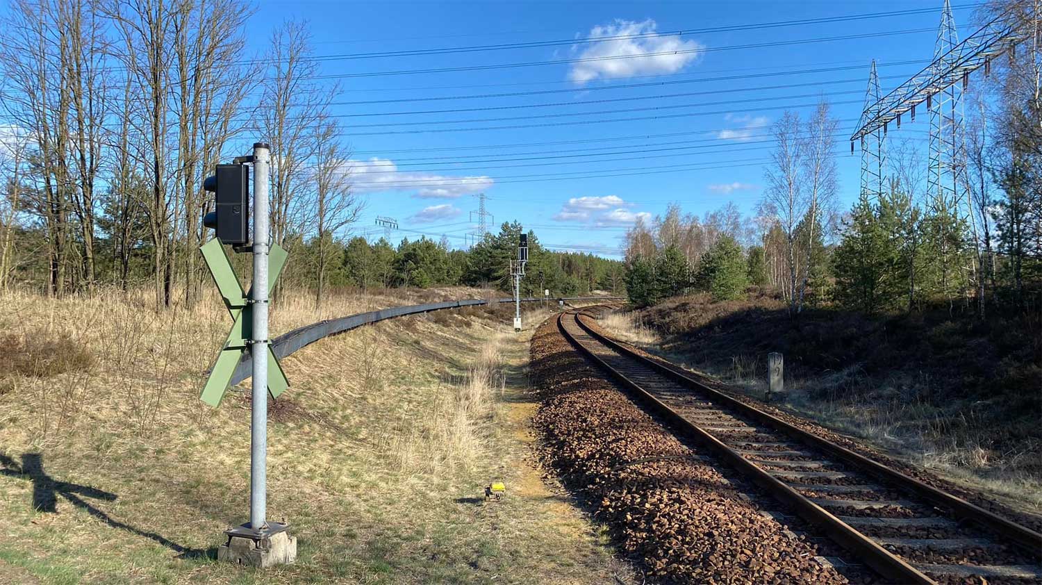 BÜ km 17,0 und km 17,1 zwischen Abzw Spreewitz Nord und Abzw Graustein Süd - Blick Richtung Graustein
