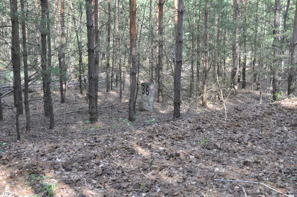 km 19,8 (Tafel und Stein)) und km 19,9 (Stein) zwischen Abzw Graustein Süd und Graustein - Blick Richtung Abzw Spreewitz Süd - Knappenrode