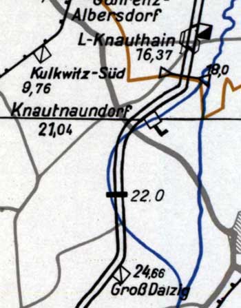 Wegen Tagebauerweiterung im Bereich Eythra und Knautnaundorf kam es 1976/77 zu einer Streckenverlegung, in deren Folge eine Überlänge entstand.