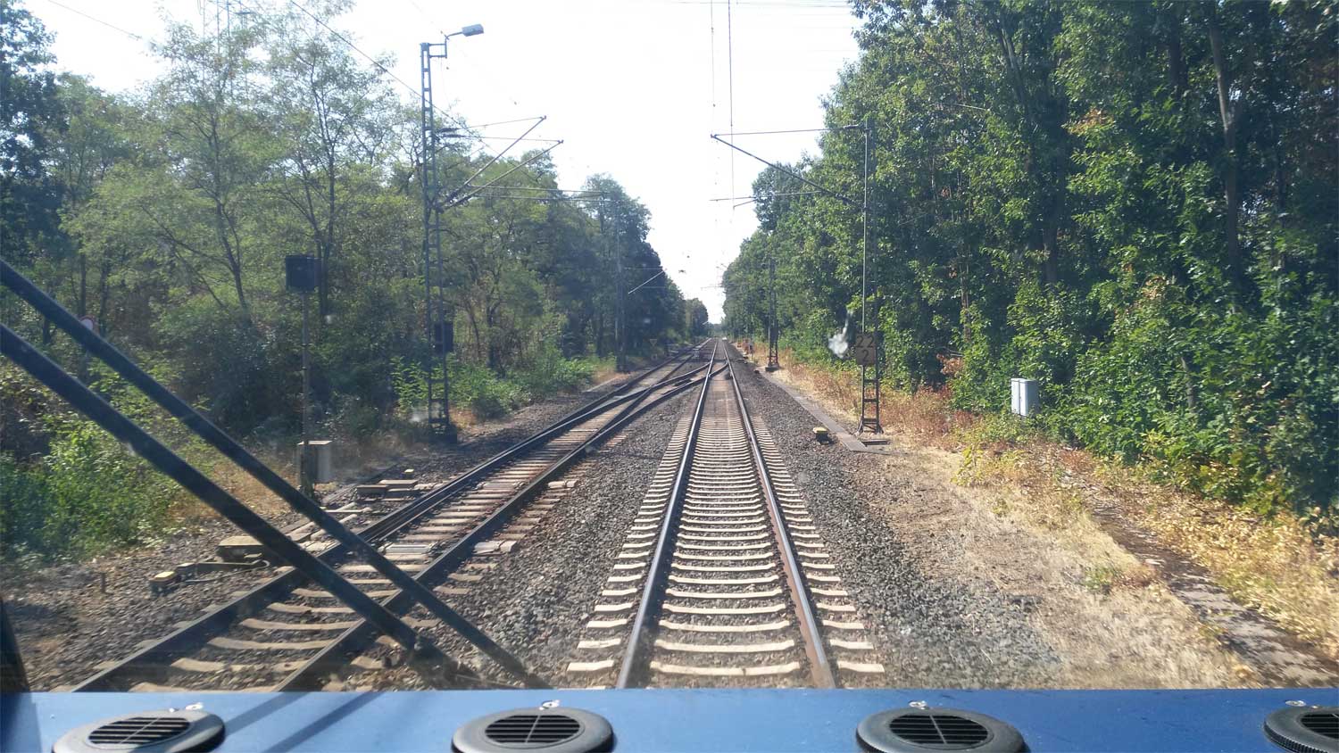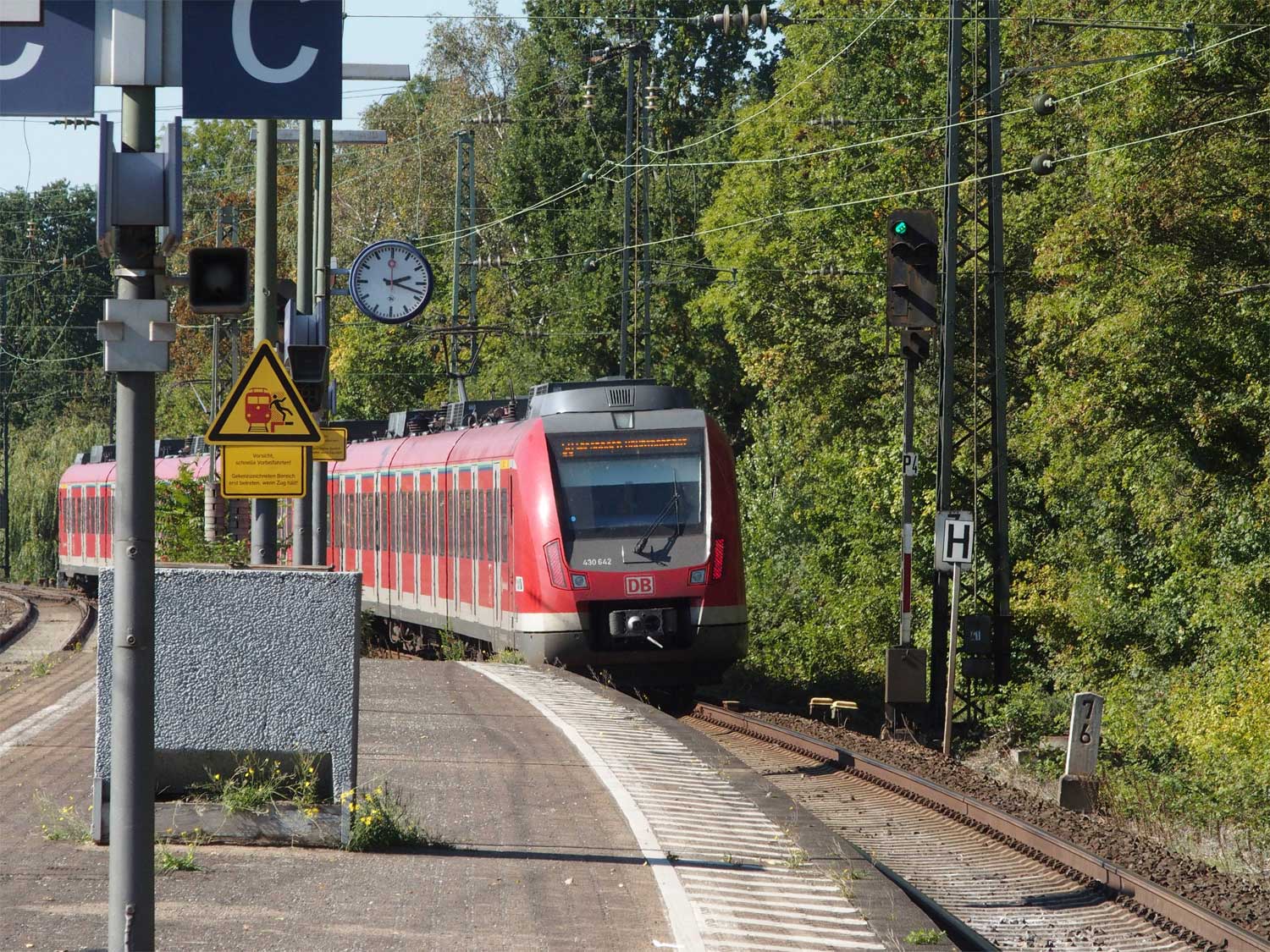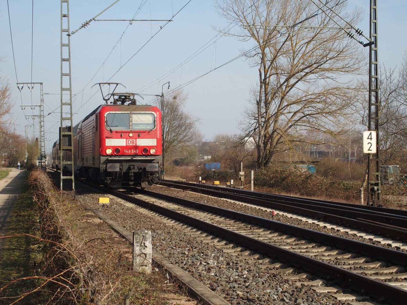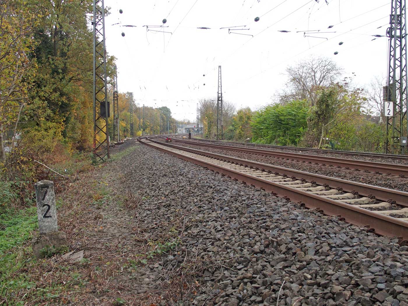 km 3,6 (versteckt hinter dem Oberleitungsmast) gehört zur Strecke