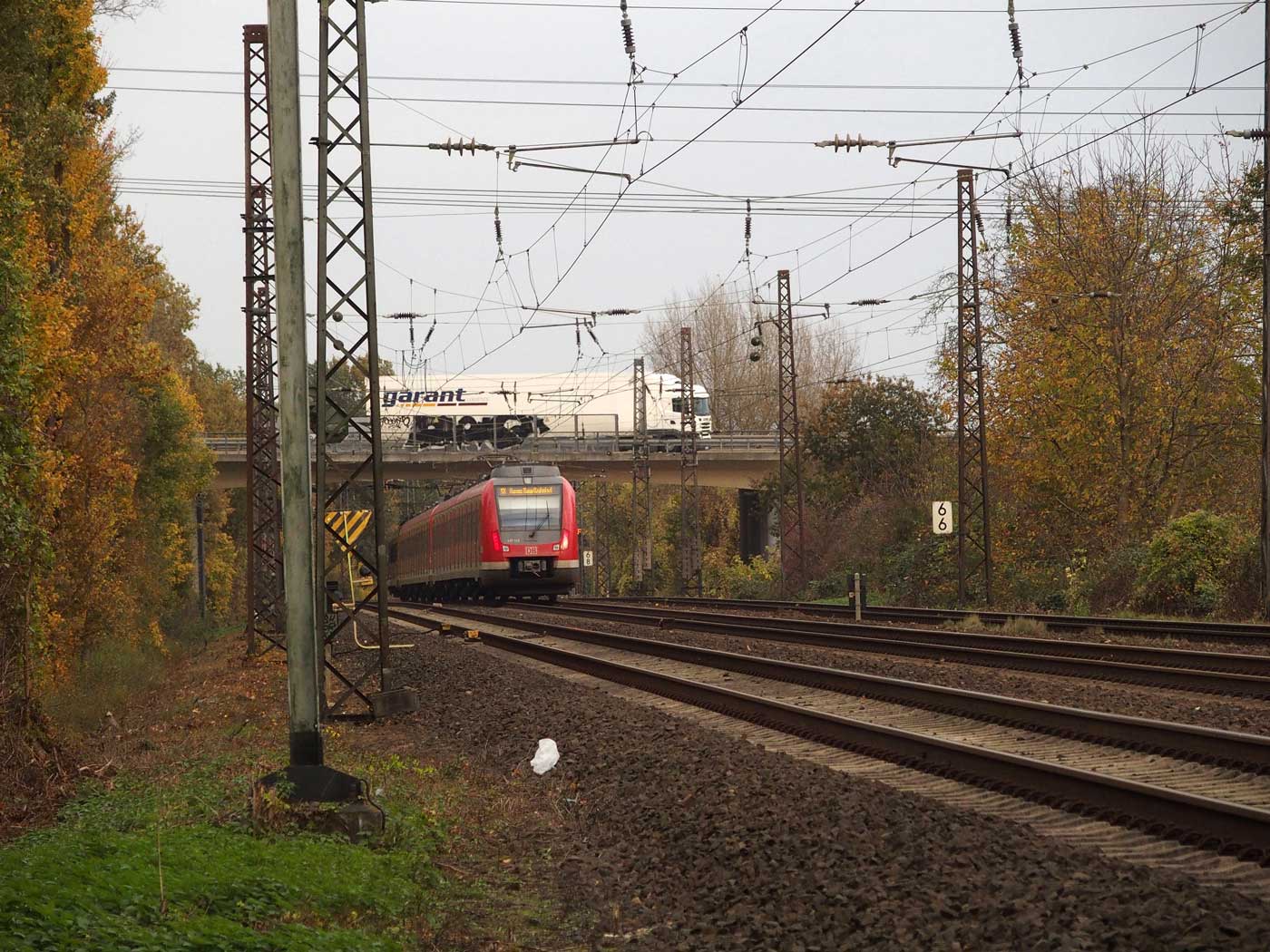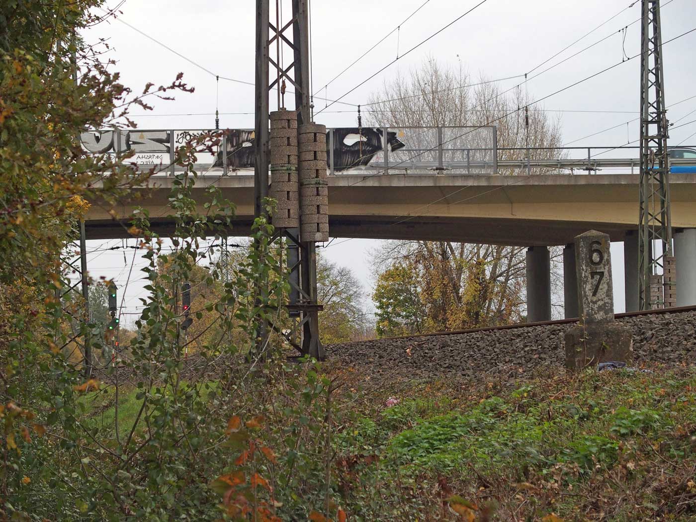 km 31,5 in Frankfurt (M)-Sportfeld - Blick Richtung Frankfurt (Main) Hbf