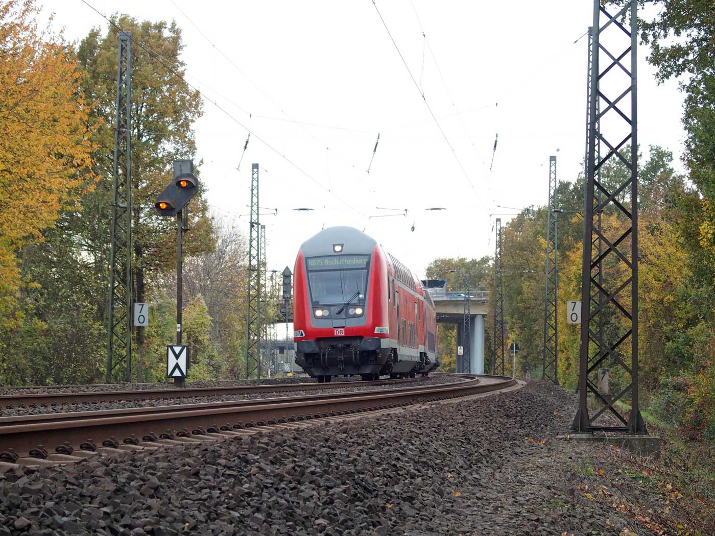 | ► | km 31,38 der abgehenden Strecke (Mainz Hbf 0,0 - Mainz Süd 1,80) - Frankfurt (M)-Sportfeld 31,38 - Frankfurt (Main) Süd 37,00 mit weiterlaufender Kilometrierung (Streckenverzweigung mit gemeinsamen Nullpunkt Mainz Hbf) | |