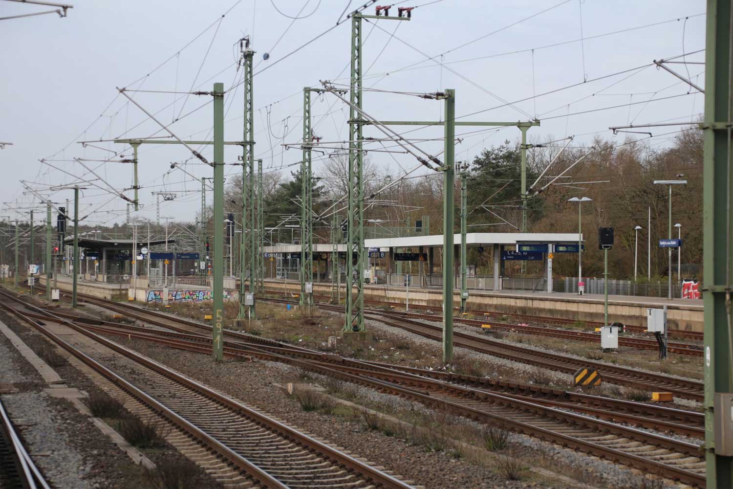 | Frankfurt (M)-Sportfeld | 31,38 | km 74,76 der Strecke Mannheim Hbf 0,0 - Lampertheim 17,55 - Goddelau-Erfelden 45,71 - Frankfurt (Main)-Sportfeld 74,76 |