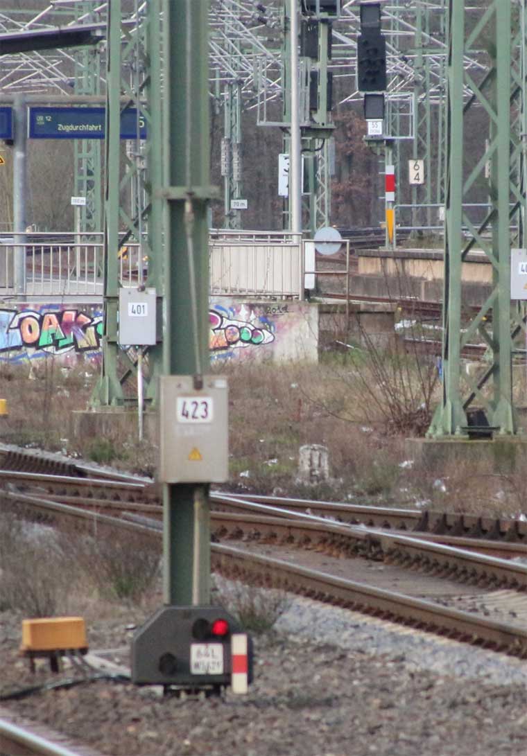 km 1,4 (Tafel links) gehört zur Strecke Frankfurt (Main) Hbf 0,0 - Abzw Mainzer Landstraße 2,98 - Abzw bei Frankfurt (Main)-Rödelheim (Niddabrücke) 6,46 (3613)