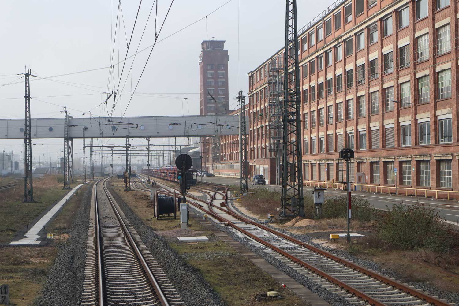 Ganz rechts das Gleis der Strecke