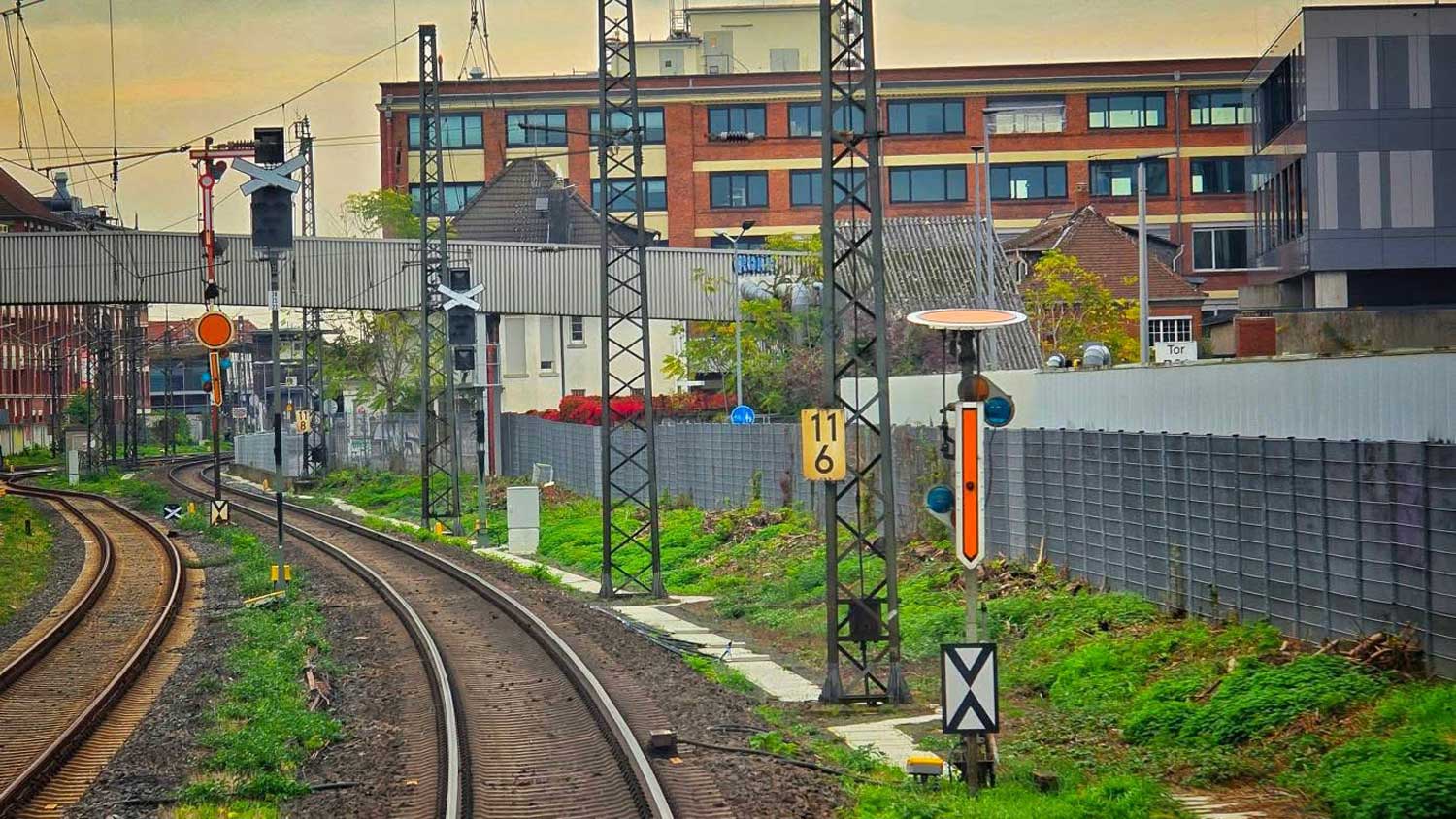 km 34,0 in Frankfurt (M)-Niederrad - Blick Richtung Frankfurt (Main) Hbf
