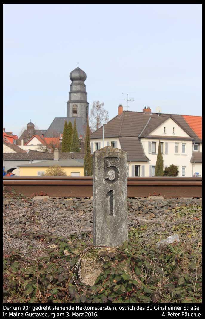 | km 49,09 der Strecke Landesgrenze Pfalz/Hessen 0,0 - Worms Hbf 3,21 - Mainz Hbf 49,09 [alte Kilometrierung] | ||